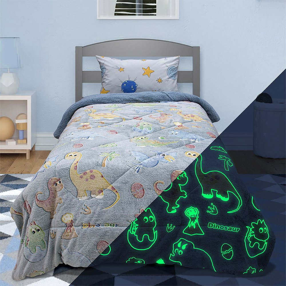 Ανακαλύψτε την απόλυτη προσθήκη στο παιδικό δωμάτιο με το κουβερτοπάπλωμα Volcano που διαθέτει ένα μοναδικό φωσφοριζέ σχέδιο δεινοσαύρων. Κατασκευασμένο από υλικά υψηλής ποιότητας, απαλά και ζεστά, το κουβερτοπάπλωμα Volcano προσφέρει άνεση και χαρά στον μικρό σας εξερευνητή κατά τη διάρκεια του ύπνου. Οι φωσφοριζέ δεινόσαυροι ζωντανεύουν στο σκοτάδι, δημιουργώντας μια μαγευτική ατμόσφαιρα που θα κάνει τον ύπνο ακόμα πιο διασκεδαστικό. Εσωτερικά, το κουβερτοπάπλωμα διαθέτει απαλή sherpa.