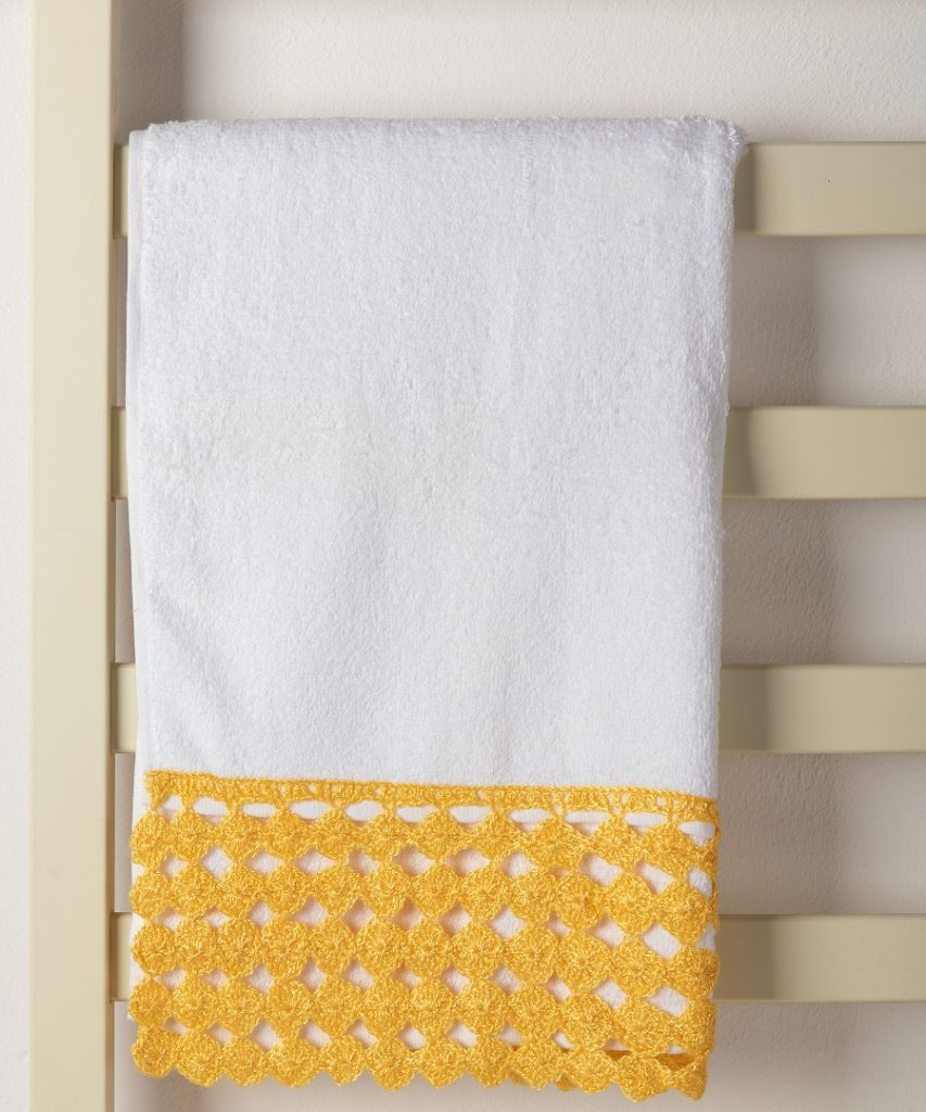 Πετσέτα Προσώπου (50cm x 100cm) με δαντέλα λευκό/κίτρινο SilkFashion