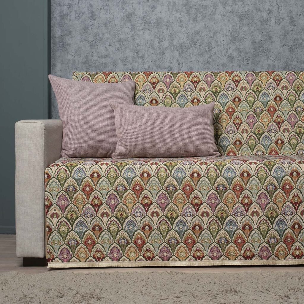 Στην εικόνα το ριχτάρι LACHOUR συνδυάζεται με τα αντίστοιχα μαξιλάρια 45Χ45 και 30Χ50.