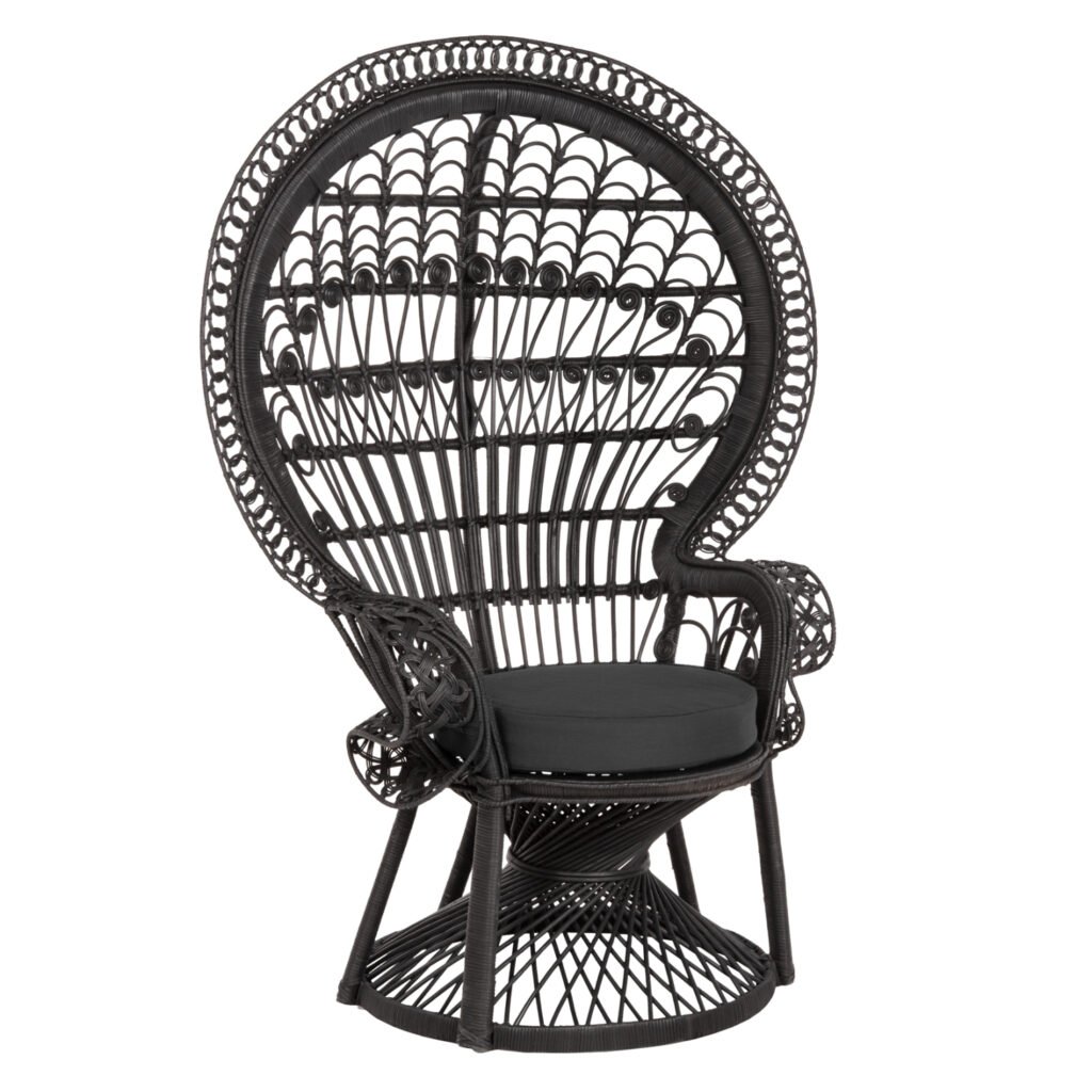 Η πολυθρόνα ROYAL PEACOCK από Rattan σε ΜΑΥΡΟ χρώμα είναι εντυπωσιακή και σίγουρα θα αφήσει το στίγμα της σε όποιο σαλόνι κι αν τοποθετηθεί. Το κάθισμά της είναι στρογγυλό και στηρίζεται σε μια εντυπωσιακή «πλεκτή» κυλινδρική βάση πάνω στην οποία υπάρχει το ΜΑΥΡΟ αναπαυτικό μαξιλάρι. Αλλά ακόμα πιο εντυπωσιακή είναι η κατασκευή των μπράτσων και της πλάτης. Το Rattan πλέκεται αριστοτεχνικά δημιουργώντας πανέμορφα σχέδια και οι διαστάσεις της πολυθρόνας τονίζουν ακόμα περισσότερο την τέχνη που υπάρχει στην κατασκευή της!