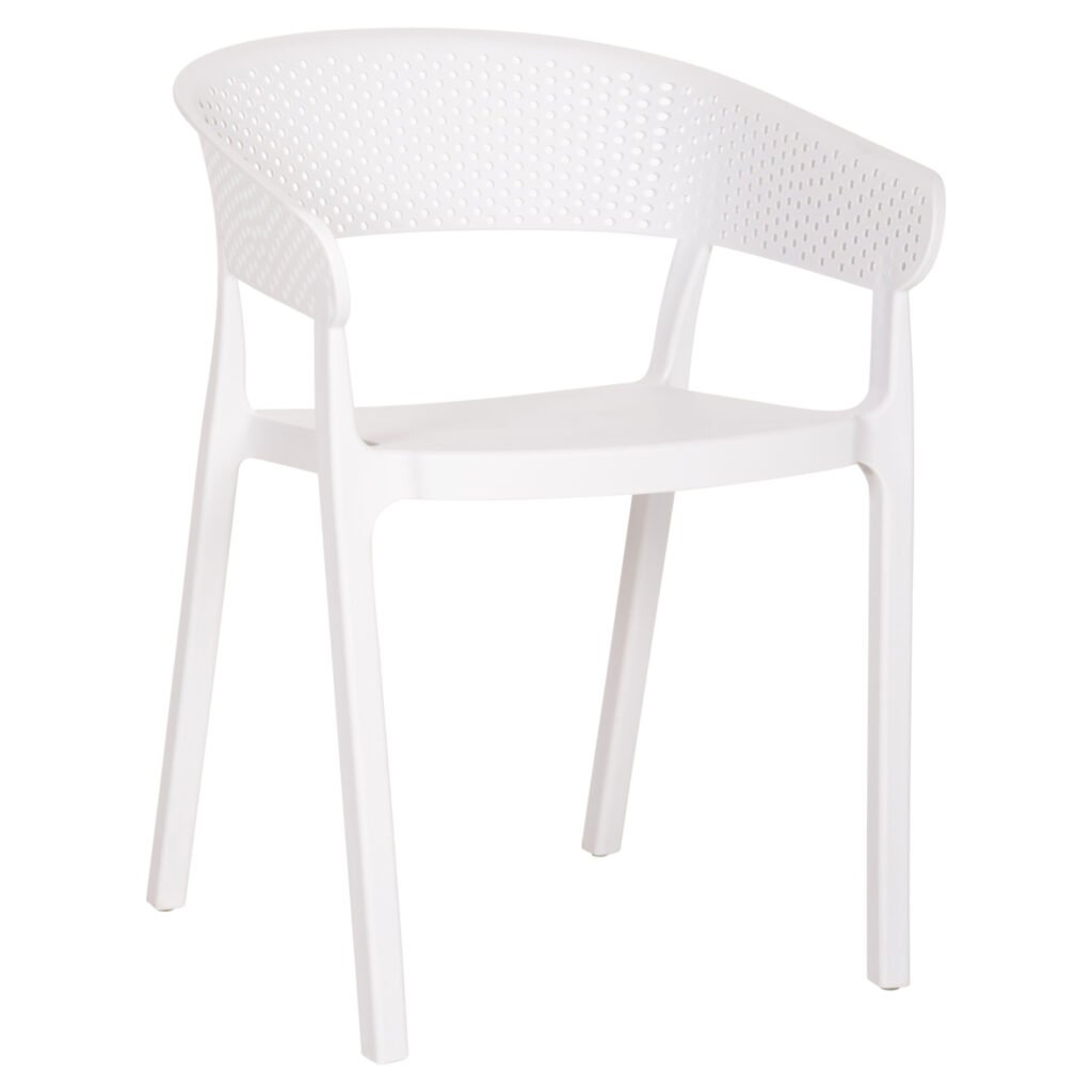 Πολυθρόνα πολυπροπυλενίου σε ΛΕΥΚΟ χρώμα. Ιδανική πρόταση για χρήση σε εξωτερικούς χώρους, είτε επαγγελματικούς (χώροι δεξιώσεων, εταιρείες catering, κλπ.) είτε για το σπίτι. Η πολυθρόνα αποτελείται από ένα λείο κάθισμα και μια ημικυκλική, ανεξάρτητη και «τρυπητή» πλάτη και μπράτσα. Είναι πανέμορφη και θα αναβαθμίσει αισθητικά κάθε εξωτερικό χώρο.