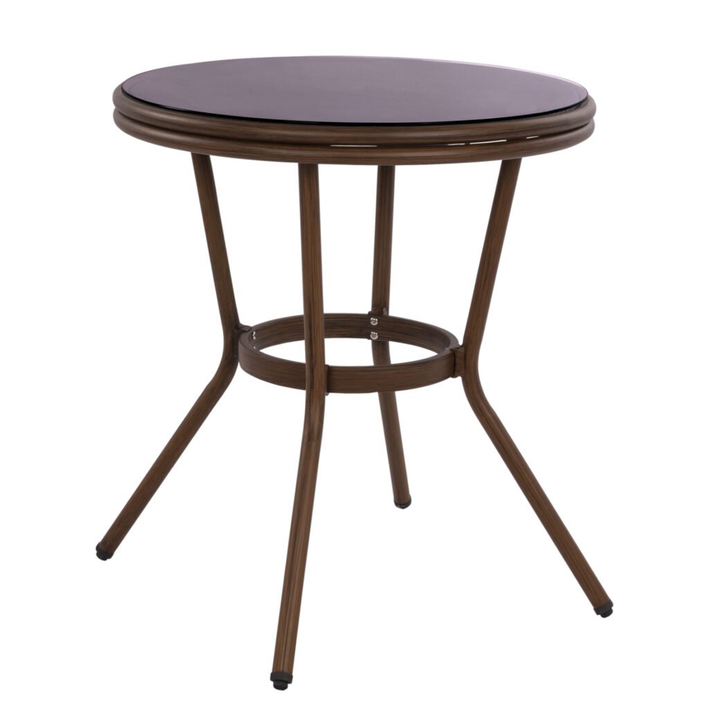 ΤΡΑΠΕΖΙ ΑΛΟΥΜΙΝΙΟΥ MOSES Φ70×76 εκ. BAMBOO LOOK HM5532.03 ΚΑΦΕ ΜΕ ΓΥΑΛΙ