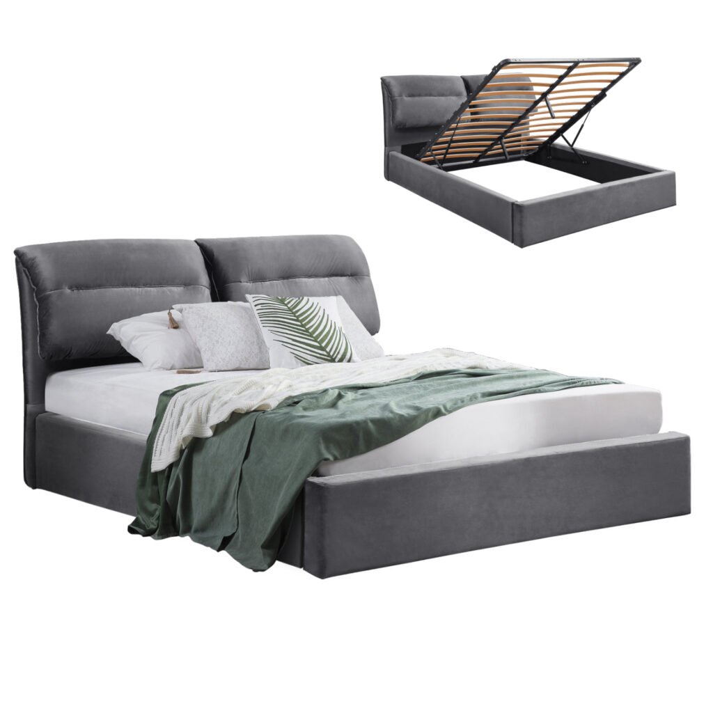 ΚΡΕΒΑΤΙ KENDRA ΒΕΛΟΥΔΟ ΓΚΡΙ ΚΑΙ ΑΠΟΘΗΚΕΥΤΙΚΟ ΧΩΡΟ 160×200 εκ. HM565.01