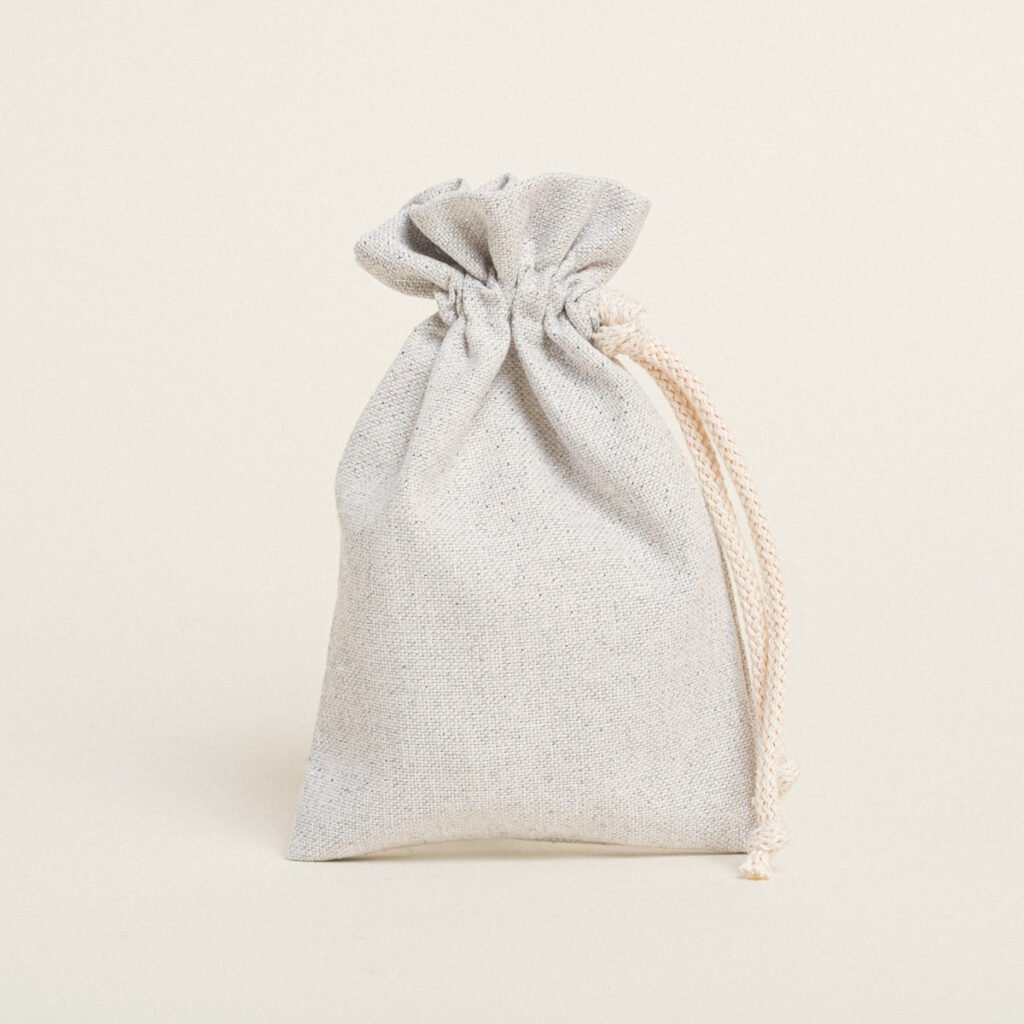 Υψηλής ποιότητας υφασμάτινο πουγκί από 80% βαμβάκι και 20% πολυέστερ, ιδανικό για μπομπονιέρες γάμου και βάπτισης, αλλά και για συσκευασία κοσμημάτων, γουριών και χειροποίητων ειδών. Η κατασκευή του από ανθεκτικά υλικά εξασφαλίζει μακροχρόνια χρήση και αντοχή. Το πουγκί ενθαρρύνει τη δημιουργικότητα, καθώς μπορεί να συνδυαστεί με κορδόνια, κορδέλες και άλλα διακοσμητικά στοιχεία, ή ακόμα να διπλωθεί και να χρησιμοποιηθεί σαν φάκελος, αποτελώντας μια ιδανική βάση για μοναδικές δημιουργίες.