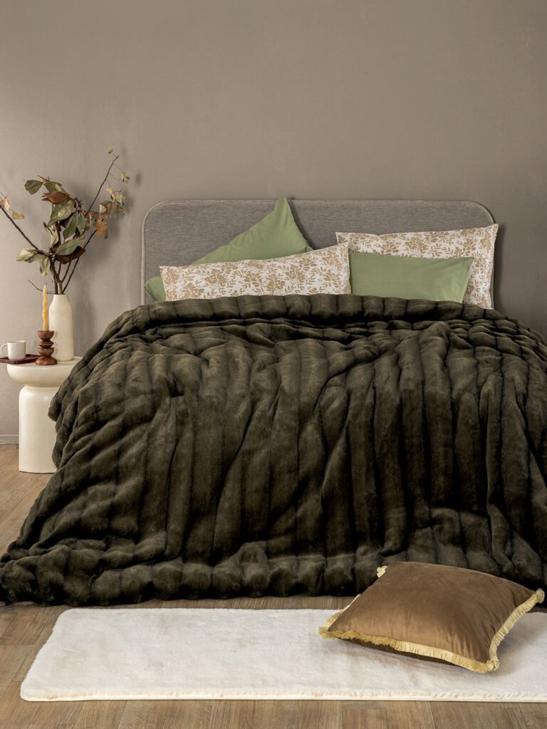 Κουβερτοπάπλωμα Υπέρδιπλο 220×240 EMBER από 100% οικολογίκή γούνα-flannel, 840gsm, απαλό, κατάλληλο για τους χειμερινούς μήνες. Διατίθεται σε 2 αποχρώσεις