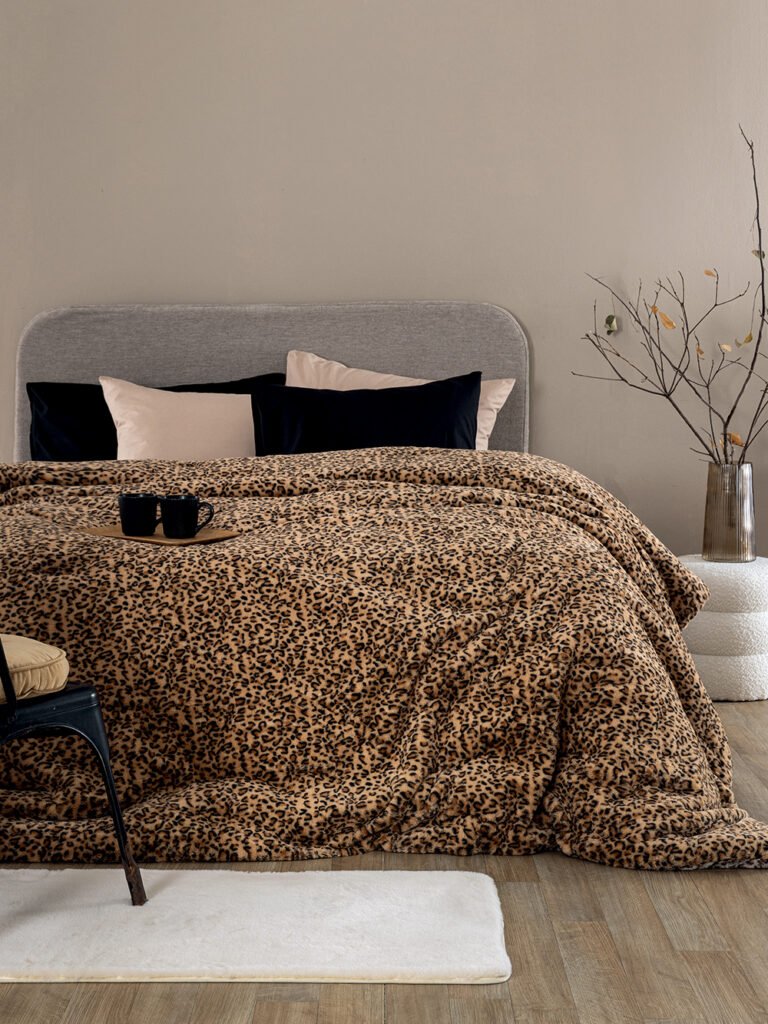 Κουβερτοπάπλωμα Υπέρδιπλο 230×250 CATE από jacquard rabbit fur, συνολικού βάρους 860gsm με μινκ fleece, με αφράτη και οικολογική γούνα, ζεστό και ιδανικό για τους χειμερινούς μήνες.