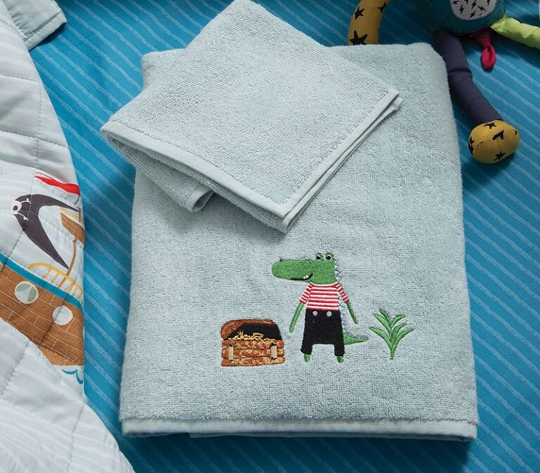 Σετ πετσέτες 2 τεμαχίων ( 40×70 + 70×130 ), κατασκευασμένη από 100% βαμβάκι με χαρούμενο κέντημα.