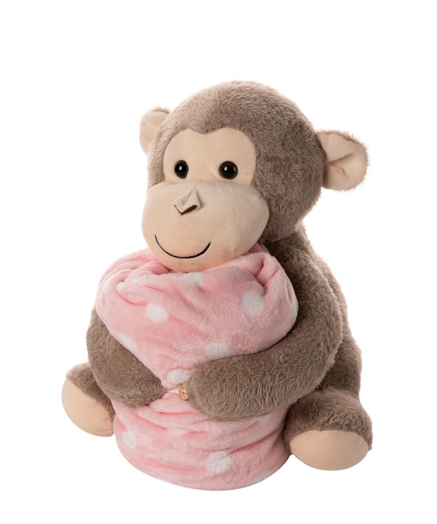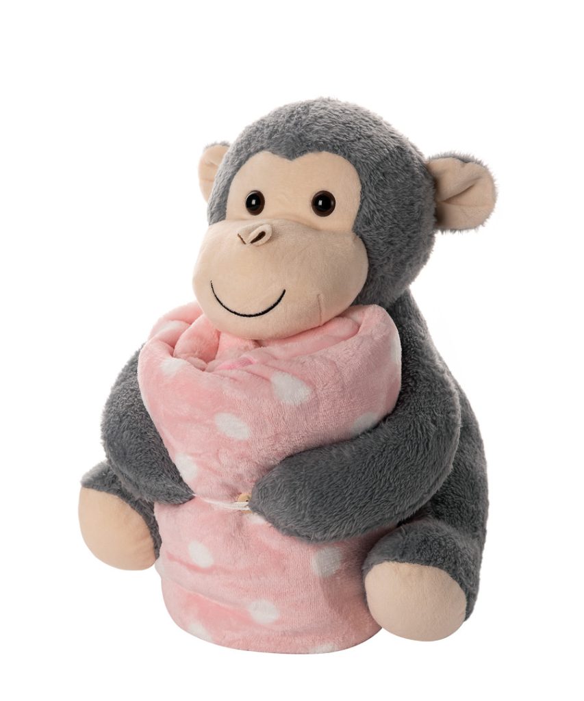 ΒΕΒΕ FLANNEL ΚΟΥΒΕΡΤΑΚΙ (80cm x 120cm) γκρί μαιμουδάκι ρόζ SilkFashion