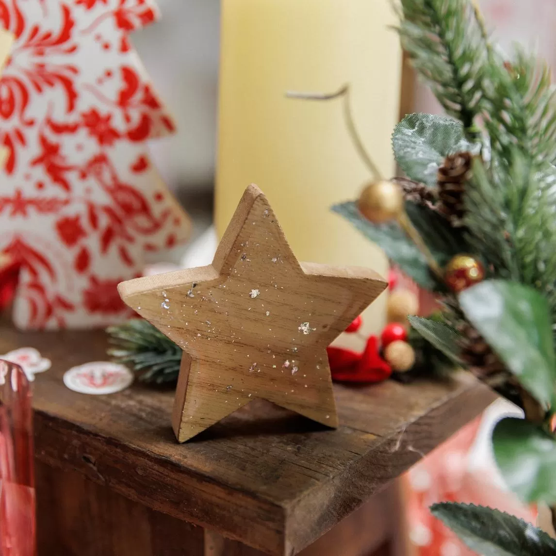 Beauty Home Αστέρι ξύλινο με ασημί γκλίτερ 7.5 x 7.5 x 1.5 cm