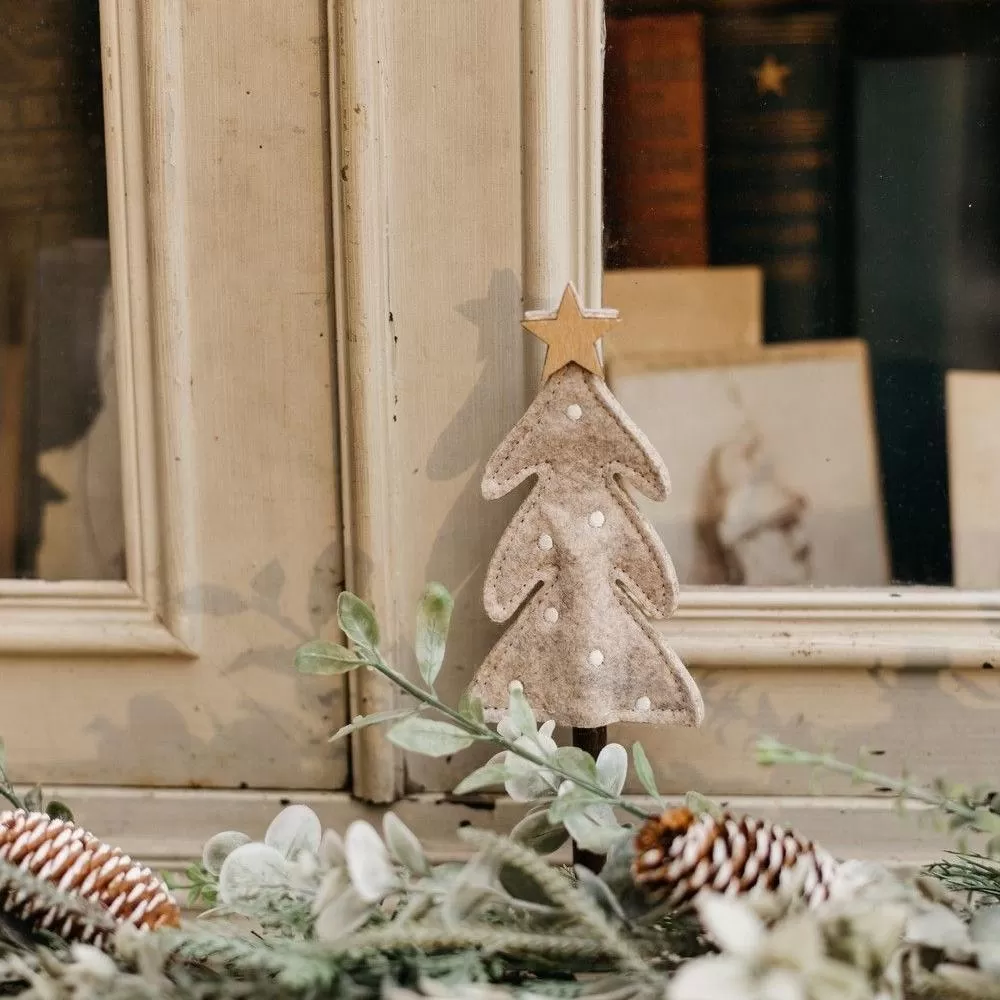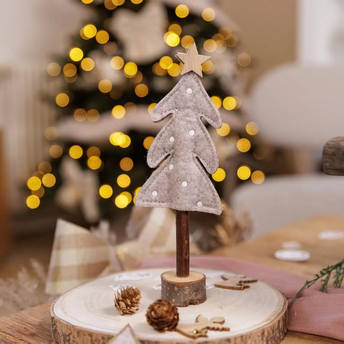 Beauty Home Δέντρο με Αστέρι σε Ξύλινη Βάση, Τσόχα Ταμπά και Λευκή Κεντητή Διακόσμηση 21 x 7,5 cm