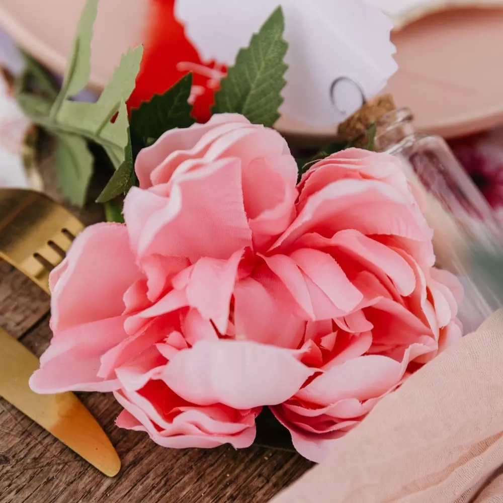 Beauty Home Διακοσμητικό κλαδί παιώνιας ροζ και πράσινο 56x10cm