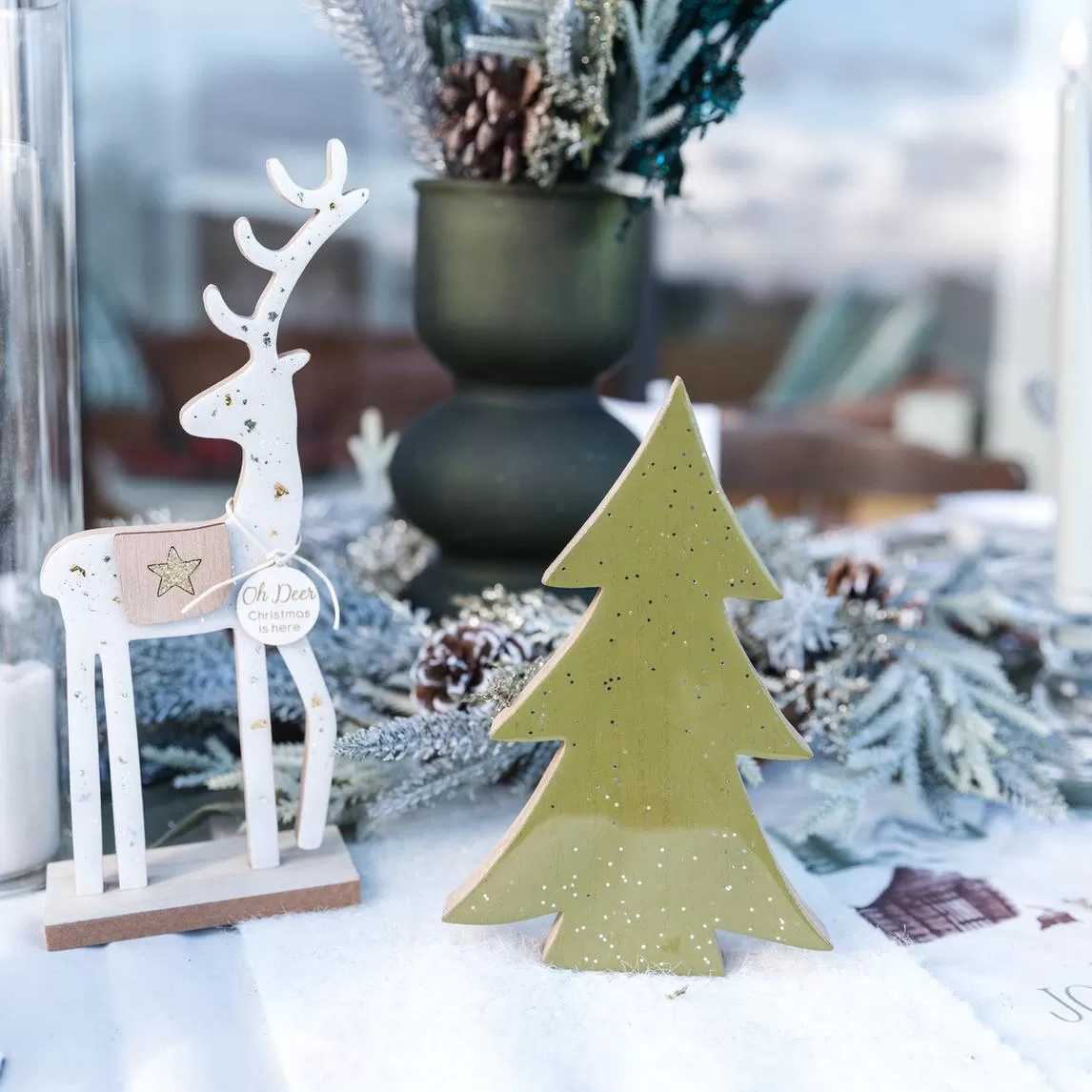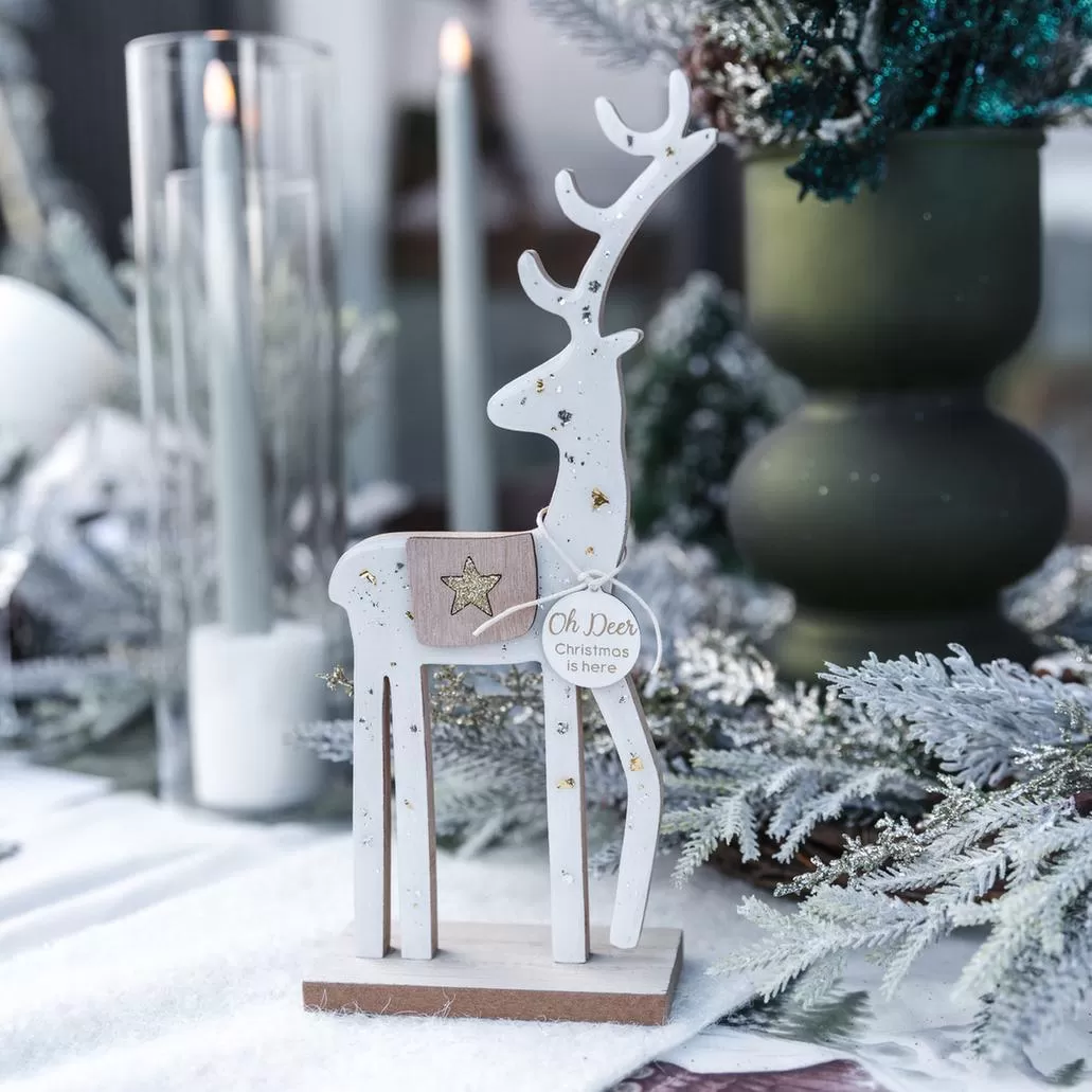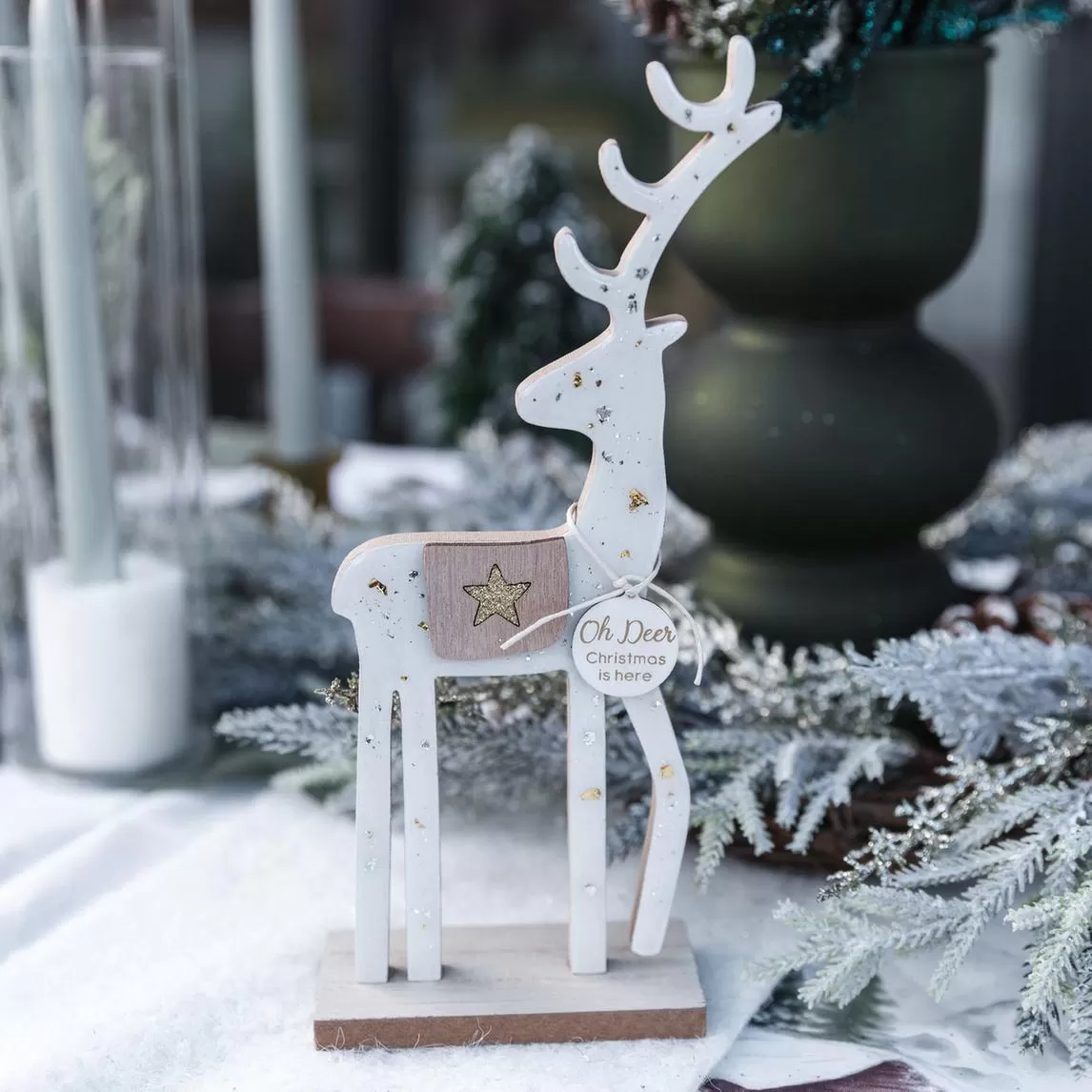 Beauty Home Διακοσμητικός Τάρανδος με Μικρά Αστέρια, Λευκό Ξύλο & Χρυσό-Ασημί Γκλίτερ 10x25x5cm
