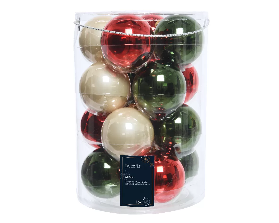 Χριστουγεννιάτικες ΓΥΑΛΙΝΕΣ ΜΠΑΛΕΣ 3 ΧΡΩΜΑΤΑ 8 cm ΣΕΤ 16 ΤΜΧ – Ιδανικά για το Χριστουγεννιάτικο Δέντρο σας!