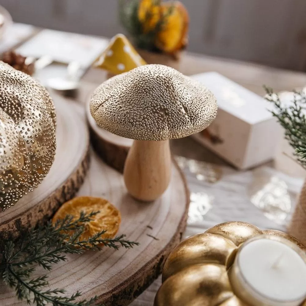 Beauty Home Μανιτάρι Ξύλινο Ανάγλυφο Χρυσό Ø9 x 10.5 cm