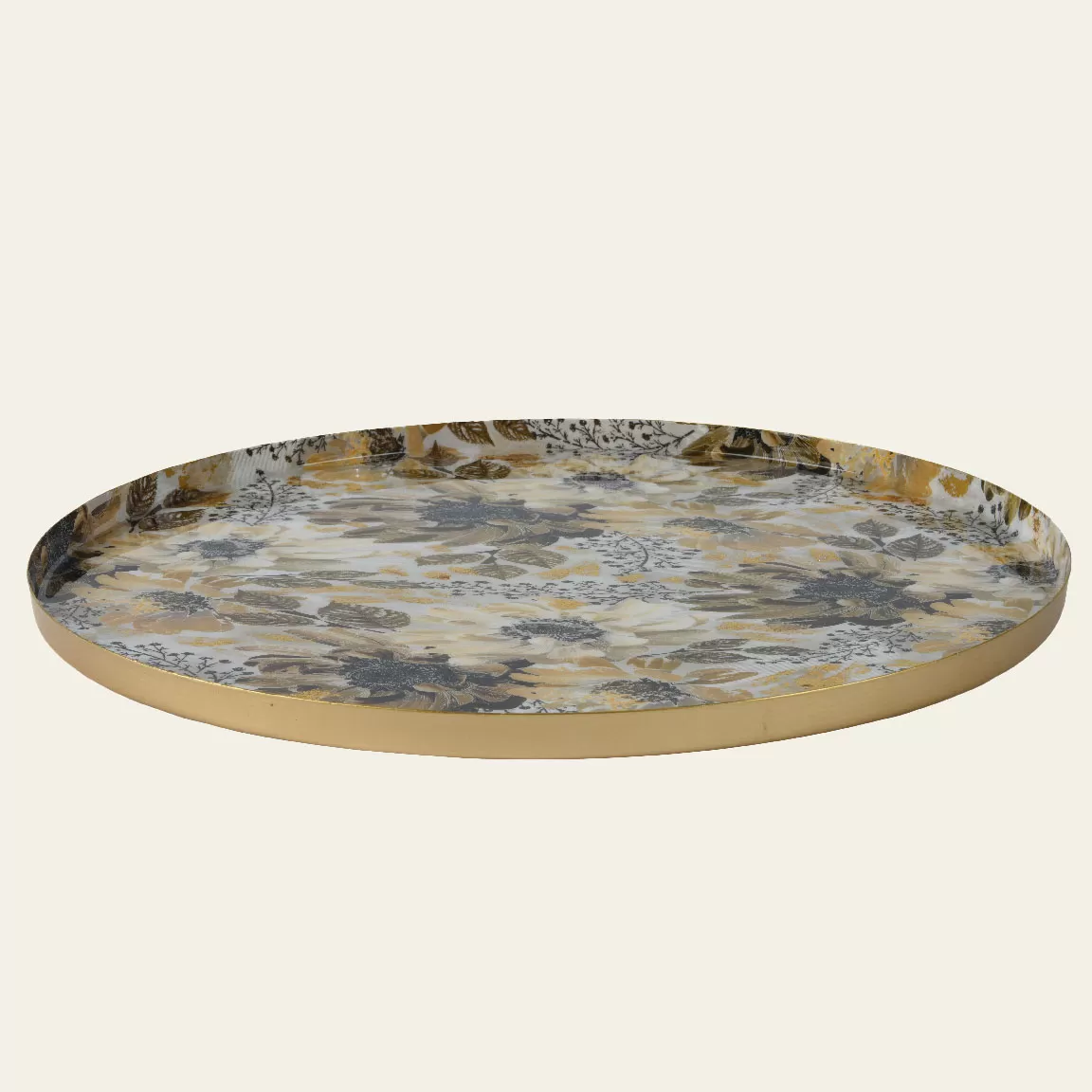 Αυτός ο δίσκος είναι ιδανικός για να χρησιμοποιηθεί ως βάση για τη σερβίρισμα ποτών ή εδεσμάτων, αλλά και ως διακοσμητικό στοιχείο, όπου μπορείτε να τοποθετήσετε κεριά, μικρά φυτά ή άλλα αγαπημένα αντικείμενα. Η εντυπωσιακή του εμφάνιση τον καθιστά κατάλληλο για κάθε περίσταση, από καθημερινές συγκεντρώσεις μέχρι εορταστικά δείπνα. Με τον μεταλλικό δίσκο με λουλούδια, μπορείτε να προσθέσετε μια μοντέρνα και κομψή αίσθηση σε κάθε γωνιά του σπιτιού σας.