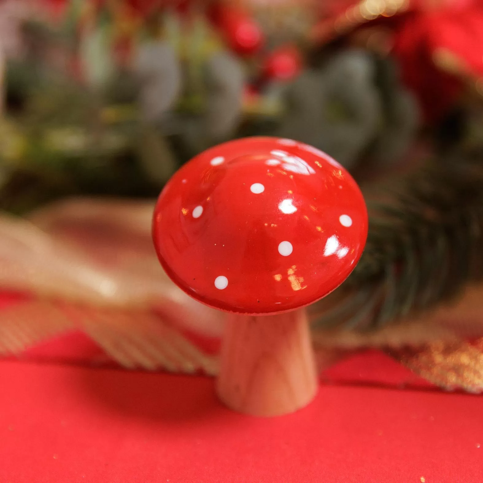 Beauty Home Μικρό Στρογγυλό Μανιτάρι Ξύλο Κόκκινο & Λευκό Ø5,5 x6,5 cm