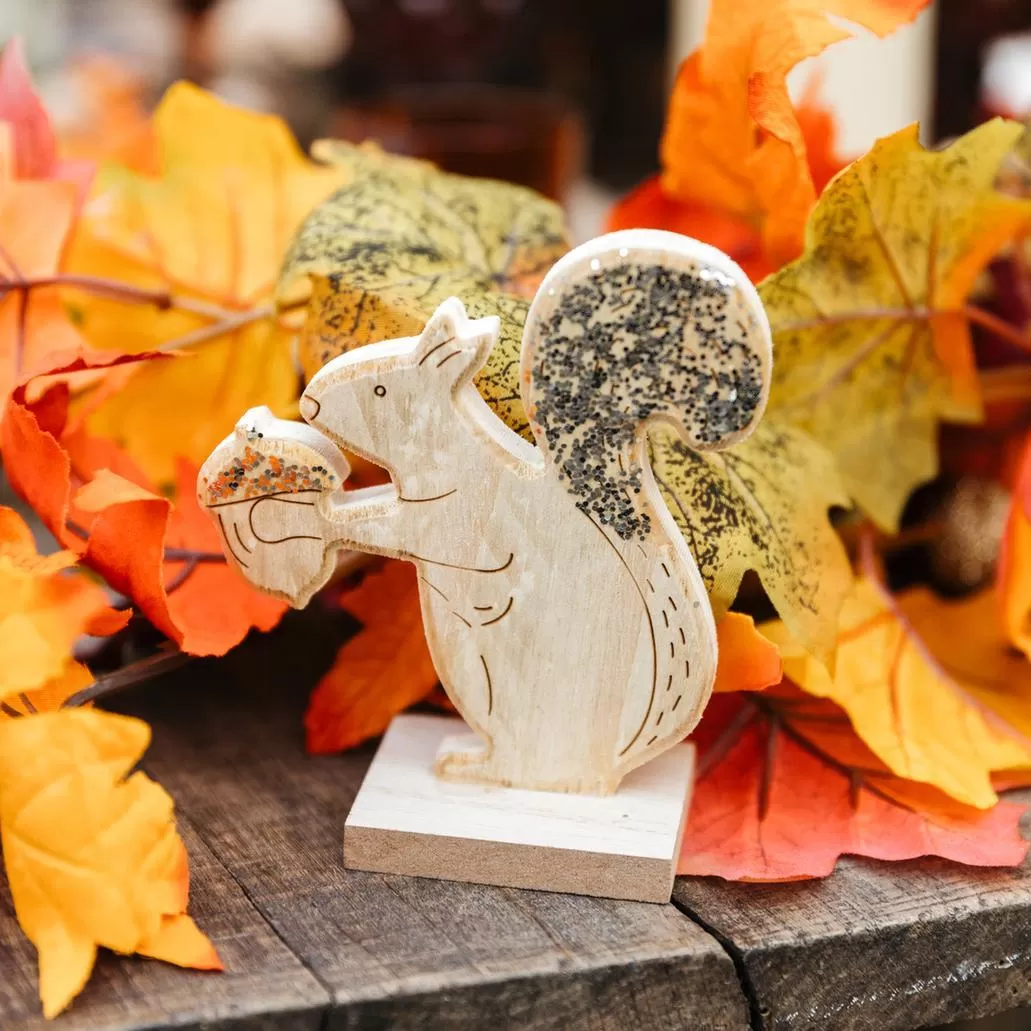 Beauty Home Σκίουρος ξύλινος με χρυσό γκλίτερ 10.5 x 11.7 cm
