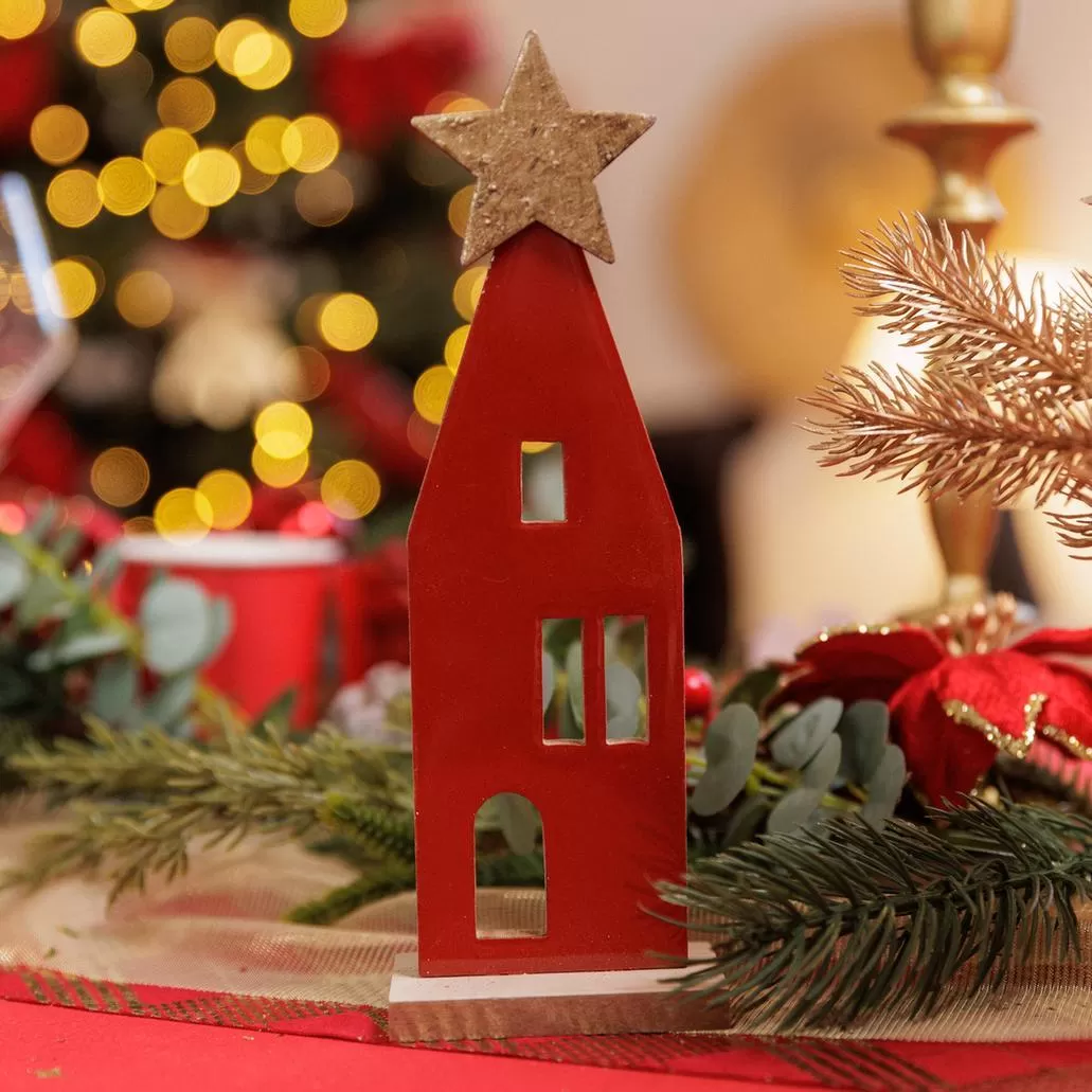 Beauty Home Σπιτάκι από Λακαρισμένο Κόκκινο Ξύλο με Χρυσό Αστέρι 7x21x4cm