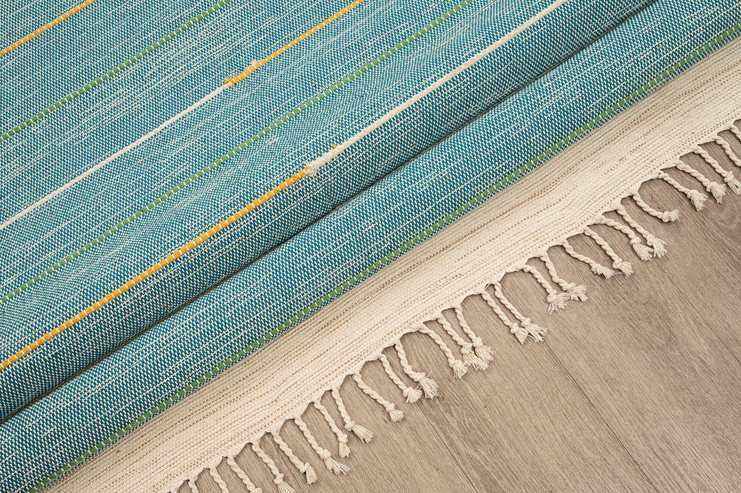 Μια ολόφρεσκια πρόταση σε ζωηρούς καλοκαιρινούς χρωματισμούς που χαρίζει μια πνοή δροσιάς και καλοκαιρινής αύρας!Η λιτή φιλοσοφία των σχεδίων της εναρμονισμένη με τα χρώματα του καλοκαίρινιου ηλίου και της θάλασσας του Αιγαίου θα κερδίσει την καρδιά σας!Χειροποιητο,πλενομενο και κατασκευασμένο από 100% Α ποιότητας αιγυπτιακό βαμβάκι.