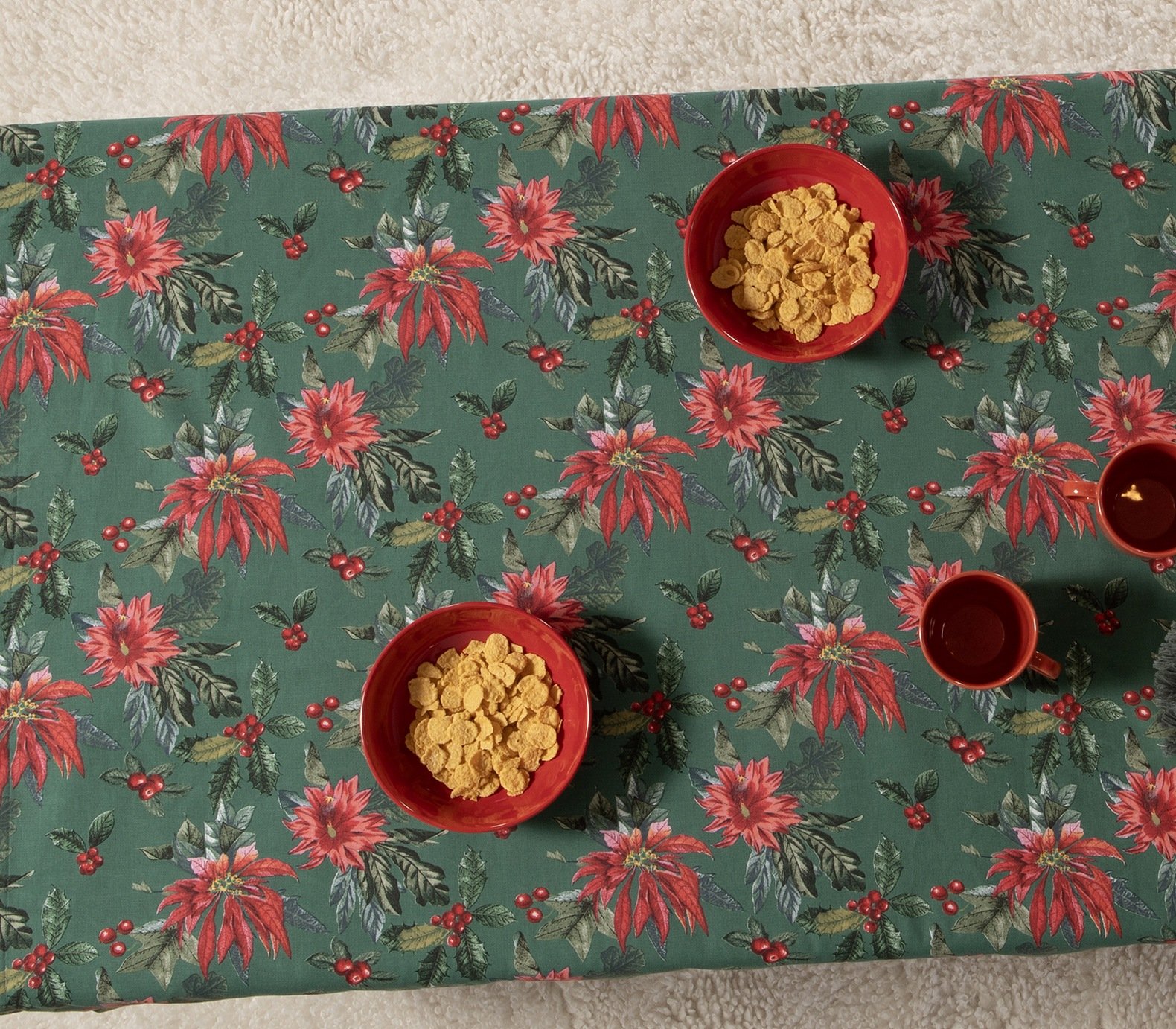 Χριστουγεννιάτικη τραβέρσα σε διάσταση 45x140cm, από 50% βαμβάκι και 50% πολυέστερ, τύπου half panama.