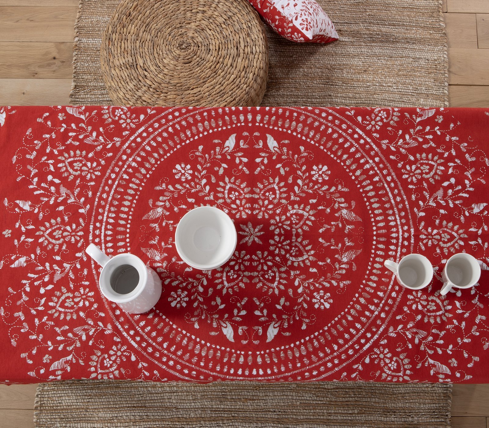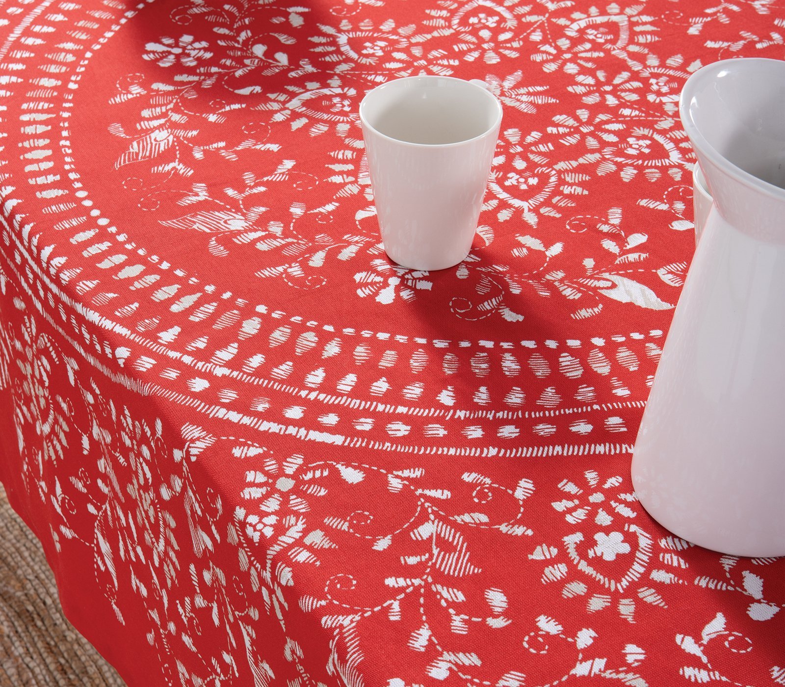 Τραπεζομάντηλο σε διάσταση 140x140cm, από 50% βαμβάκι και 50% πολυέστερ, τύπου half panama.