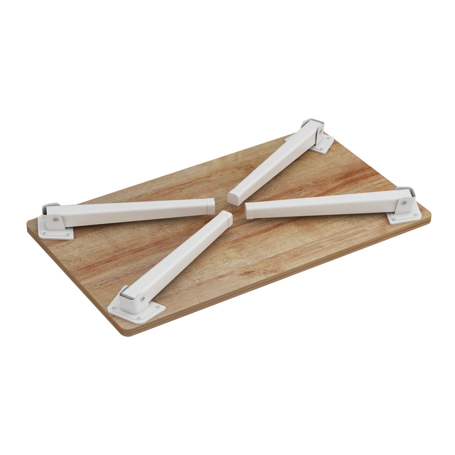 ΗΜ8965.12 Βοηθητικό τραπεζάκι-δίσκος κρεβατιού—– Το τραπεζάκι BRITTA διαθέτει μια επιφάνεια από μελαμίνη σε χρώμα ΦΥΣΙΚΟΥ ΞΥΛΟΥ και 4 κοντά μεταλλικά πόδια σε ΛΕΥΚΟ χρώμα. Η ιδιαιτερότητα είναι ότι τα πόδια είναι πτυσσόμενα και μπορεί να χρησιμοποιηθεί τόσο ως απλό βοηθητικό τραπεζάκι σε πολλούς χώρους, όσο και ως τραπεζάκι «δίσκος» για το κρεβάτι, εάν θέλετε να πάρετε το πρωινό σας ή οτιδήποτε άλλο. Και φυσικά μπορεί να μαζευτεί και να αποθηκευτεί στον μικρότερο δυνατό χώρο. Ένα πολύ πρακτικό έπιπλο που δεν πρέπει να λείπει από κανένα σπίτι.