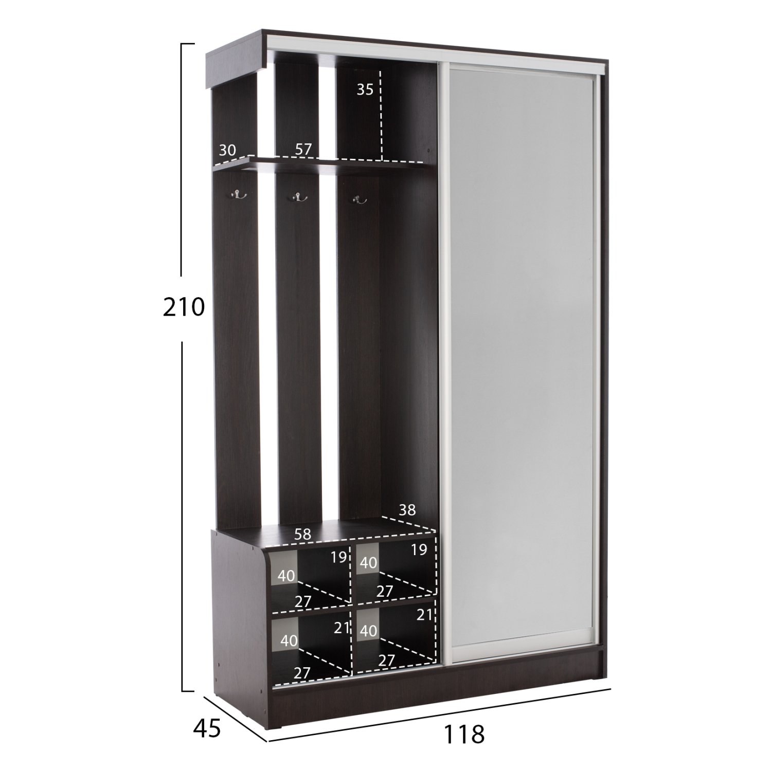 Έπιπλο εισόδου με καθρέπτη σε wenge απόχρωση 118x45x210 εκ.