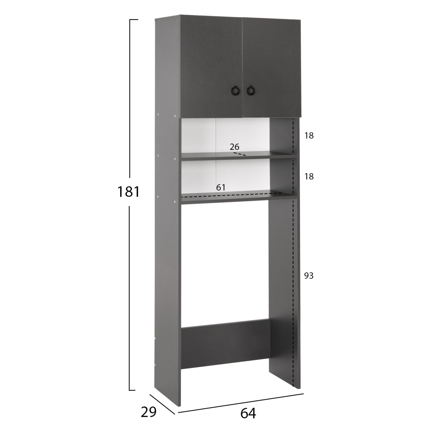 Σας παρουσιάζουμε το καινούριο έπιπλο για το πλυντήριο TERRY. Κατασκευασμένο από μελαμίνη σε όμορφο ΓΚΡΙ χρώμα, αποτελείται από ένα δίφυλλο ντουλάπι στο επάνω μέρος και 2 ανοιχτά ράφια στην μέση.