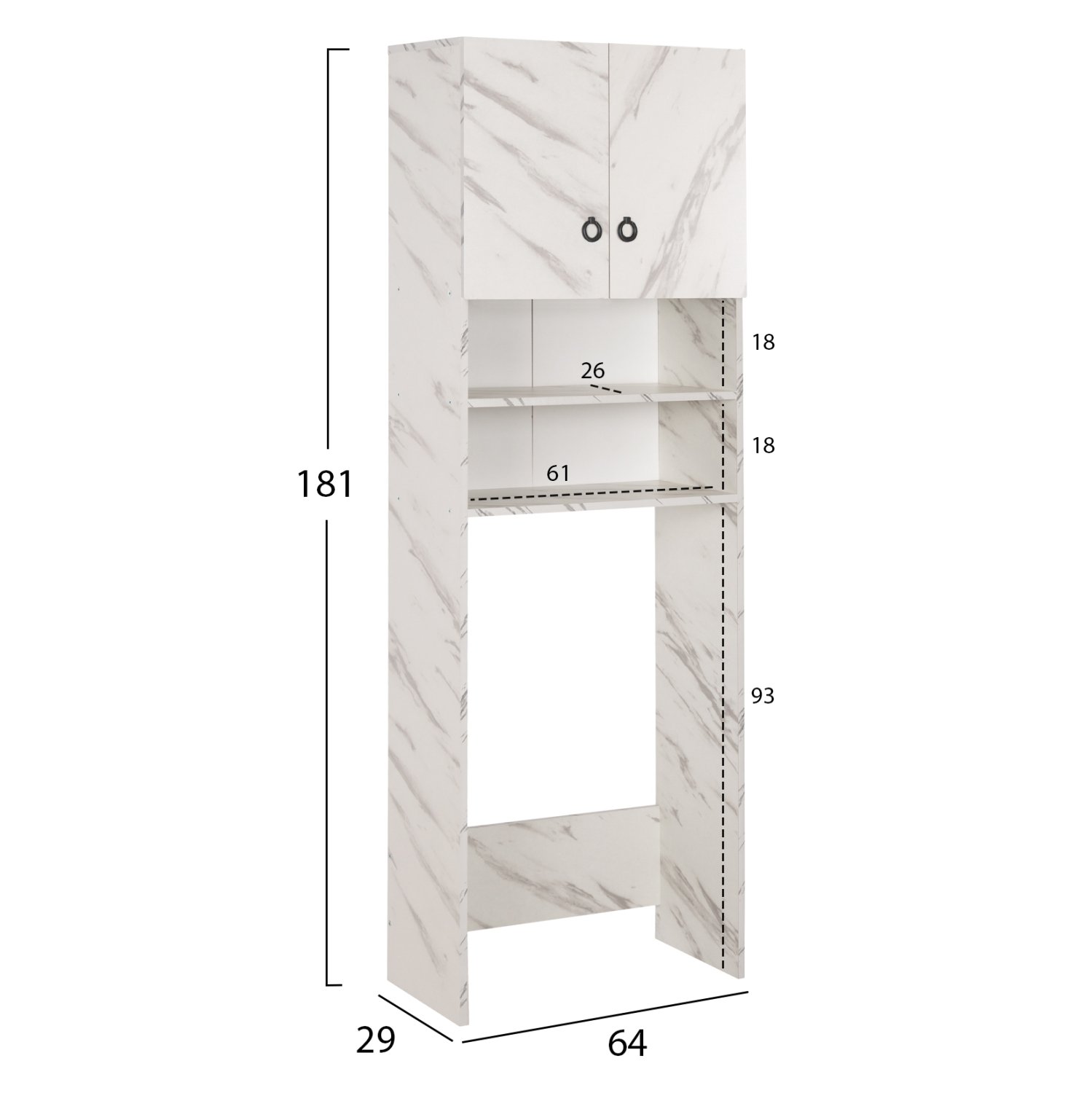 Σας παρουσιάζουμε το καινούριο έπιπλο για το πλυντήριο TERRY. Κατασκευασμένο από μελαμίνη σε όμορφο ΛΕΥΚΟ ΜΑΡΜΑΡΟ χρώμα, αποτελείται από ένα δίφυλλο ντουλάπι στο επάνω μέρος και 2 ανοιχτά ράφια στην μέση.