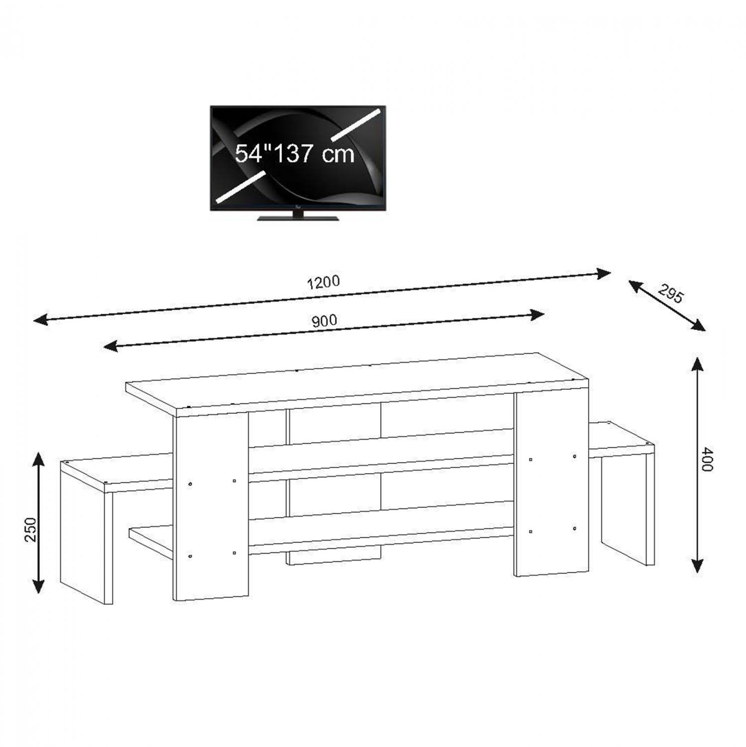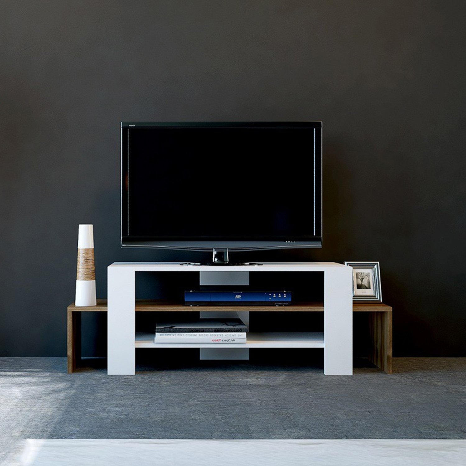 Minimal έπιπλο τηλεόρασης με λιτό σχεδιασμό, κατασκευασμένο από ανθεκτική μελαμίνη πάχους 18 χιλιοστών υψηλής ποιότητας σε λευκή και καρυδί απόχρωση.