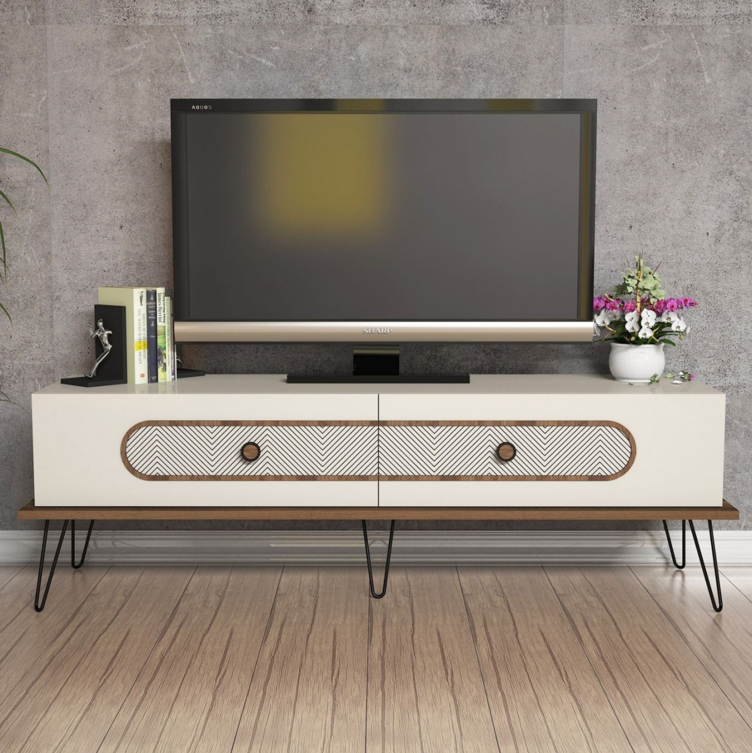 Το ΗΜ9511.01 είναι ένα μοντέρνο και λειτουργικό έπιπλο τηλεόρασης από μελαμίνη σε ΚΑΡΥΔΙ ΚΑΙ ΚΡΕΜ χρώμα, που θα ομορφύνει το σαλόνι σας! Είναι μακρύ και διαθέτει δύο ισομεγέθη ντουλάπια ως κύριο χώρο αποθήκευσης ή τοποθέτησης αντικειμένων. Η εμπρός όψη των ντουλαπιών, που ανοίγουν κατακόρυφα, είναι διακοσμημένη με μηχανικά κατασκευασμένα (CNC Relief) και όμορφα γραμμικά σχέδια. Τα μεταλλικά πόδια είναι ψηλά. Οι διαστάσεις του επίπλου είναι κατάλληλες για όλες τις τηλεοράσεις εάν θέλετε η τηλεόρασή σας να στηρίζεται σε βάση. Πρόκειται για μια κομψή πρόταση για το σαλόνι σας!