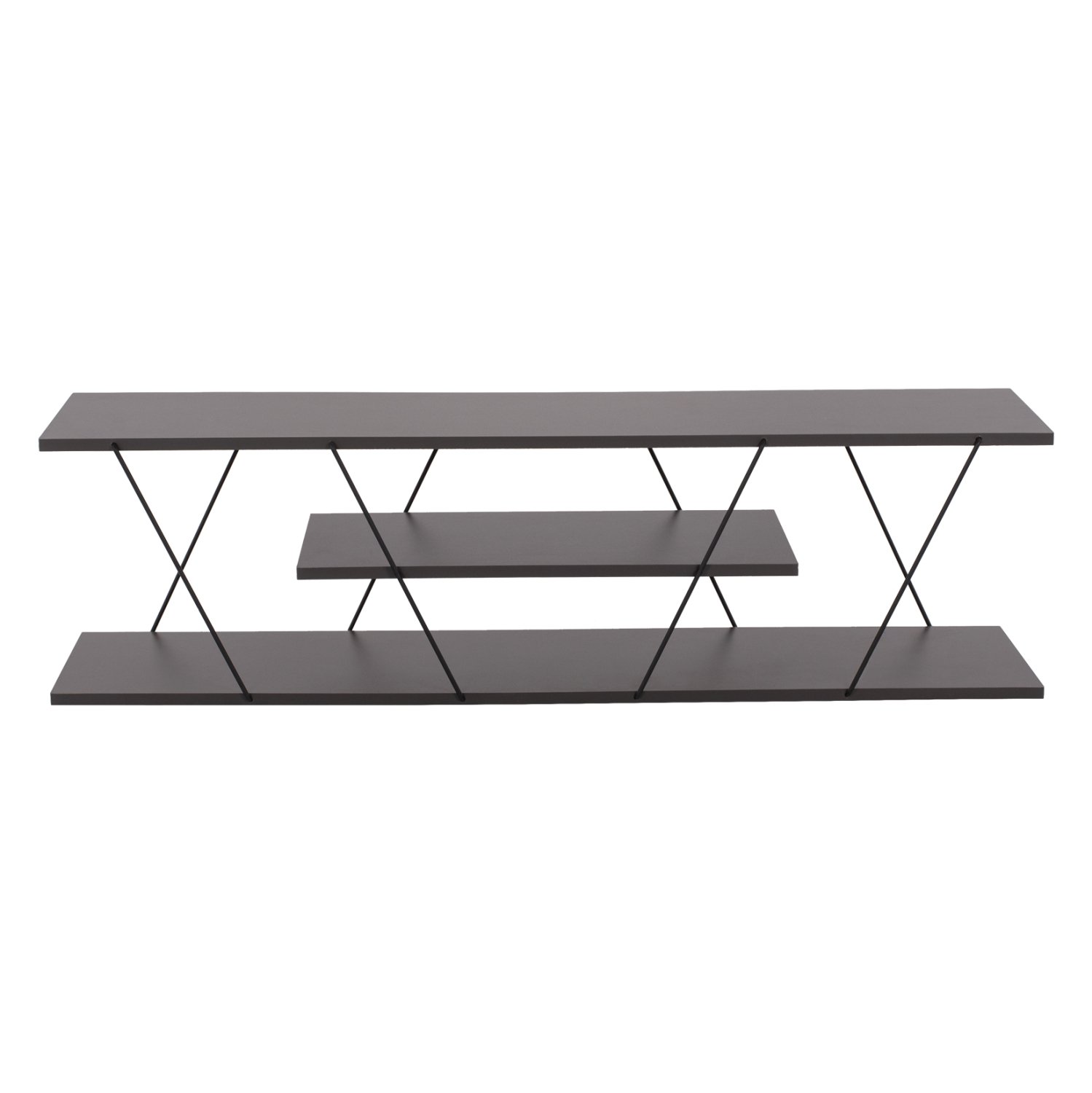 ΗΜ8922.20 έπιπλο τηλεόρασης—– Το TARS είναι ένα όμορφο έπιπλο σε ΓΚΡΙ χρώμα με μοντέρνο design που θα αλλάξει την εικόνα του σαλονιού ή του καθιστικού σας προς το καλύτερο. Πρόκειται για μια στενόμακρη κατασκευή 3 επιπέδων (επιφανειών) τα οποία ενώνονται μεταξύ τους με μεταλλικές ΜΑΥΡΕΣ βέργες διαφορετικής γεωμετρίας, προσδίδοντας την μοντέρνα πινελιά σε αυτό το έπιπλο τηλεόρασης. Το ΗΜ8922.20 μπορεί να ταιριάξει με πολλά διακοσμητικά μοτίβα στον χώρο χάρη και στο λιτό του στυλ.