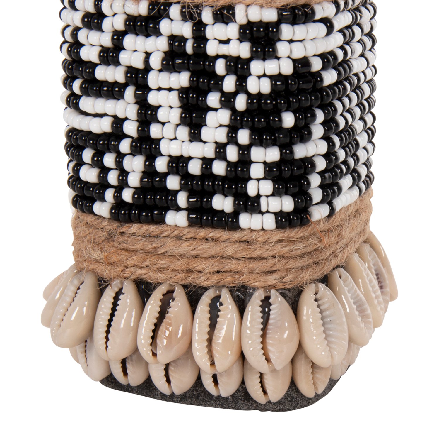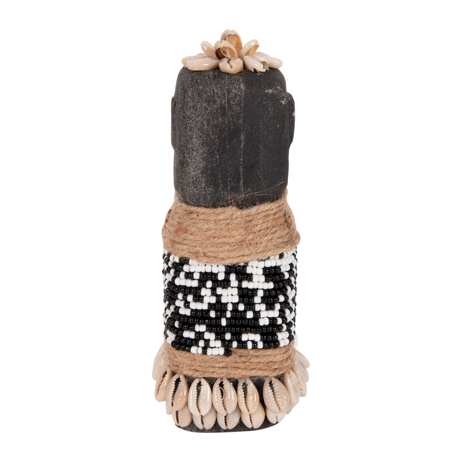 Το επιτραπέζιο διακοσμητικό SUMBA θα δώσει μια άλλη «αύρα» στον χώρο σας. Πρόκειται για ένα μακρόστενο αγαλματίδιο Πολυνησιακής τεχνοτροπίας (μορφή Μοάι), σε ΜΑΥΡΗ απόχρωση, διακοσμημένο με χάντρες και σχοινί από seagrass. Αυτό που κάνει όμως το ΗΜ4311 να ξεχωρίζει είναι η σημειολογία του. Είναι κατασκευασμένο από PARAS STONE, το οποίο στα ελληνικά αποδίδεται ως «τυχερή πέτρα» και λέγεται ότι φέρνει τύχη στον κάτοχό του. Προέρχεται από την Ινδική μυθολογία στην οποία το PARAS STONE είχε την ιδιότητα να μετατρέπει οποιοδήποτε αντικείμενο σε χρυσό.