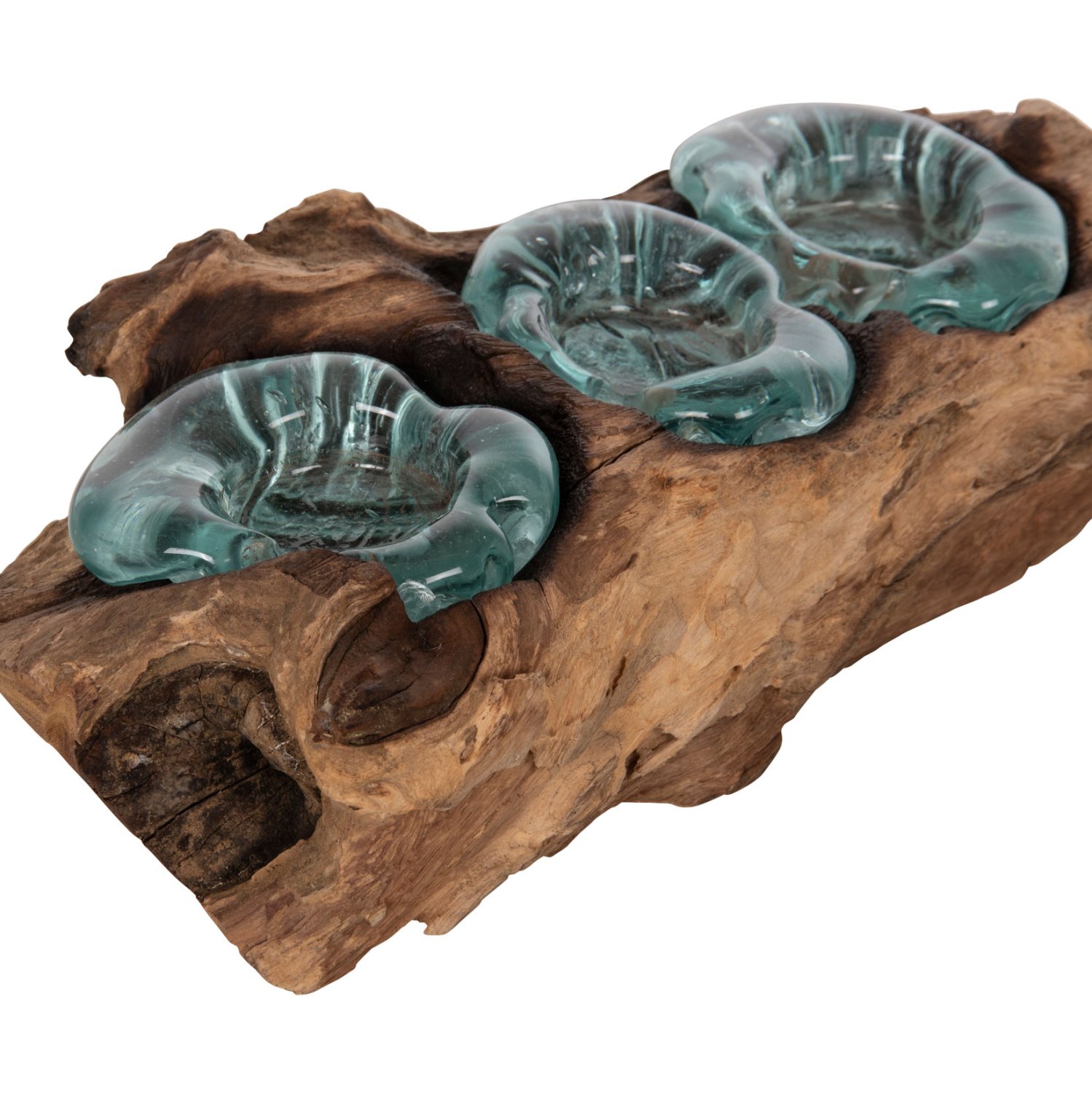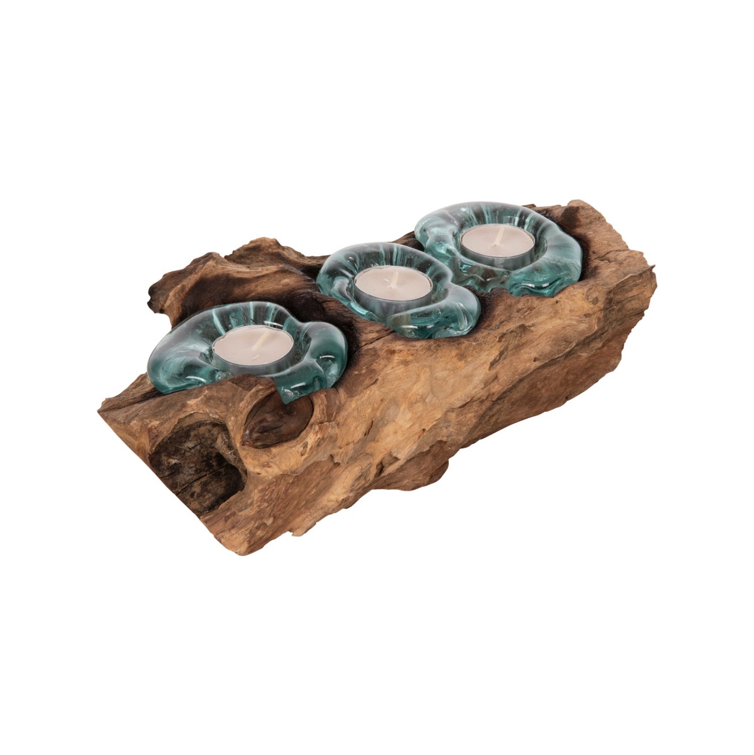 Το επιτραπέζιο διακοσμητικό HM4282 είναι μια βάση για 3 κεράκια ρεσό κατασκευασμένη από μασίφ ξύλο ΤΕΑΚ. Οι βάσεις για τα ρεσό είναι από γυαλί. Οι οπαδοί του ρουστίκ στυλ στην διακόσμηση θα ενθουσιαστούν με αυτή την πρόταση.