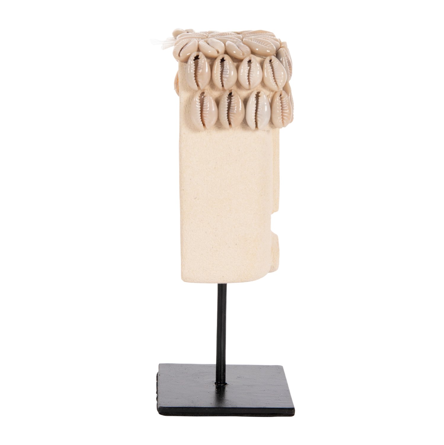Το επιτραπέζιο διακοσμητικό ΗΜ4313 θα δώσει μια άλλη «αύρα» στον χώρο σας. Πρόκειται για ένα μακρόστενο προσωπείο με κοχύλια, σε ΦΥΣΙΚΗ απόχρωση, τοποθετημένο σε ένα ΜΑΥΡΟ μεταλλικό stand. Αυτό που κάνει όμως το ΗΜ4313 να ξεχωρίζει είναι η σημειολογία του. Είναι κατασκευασμένο από PARAS STONE, το οποίο στα ελληνικά αποδίδεται ως «τυχερή πέτρα» και λέγεται ότι φέρνει τύχη στον κάτοχό του. Προέρχεται από την Ινδική μυθολογία στην οποία το PARAS STONE είχε την ιδιότητα να μετατρέπει οποιοδήποτε αντικείμενο σε χρυσό.