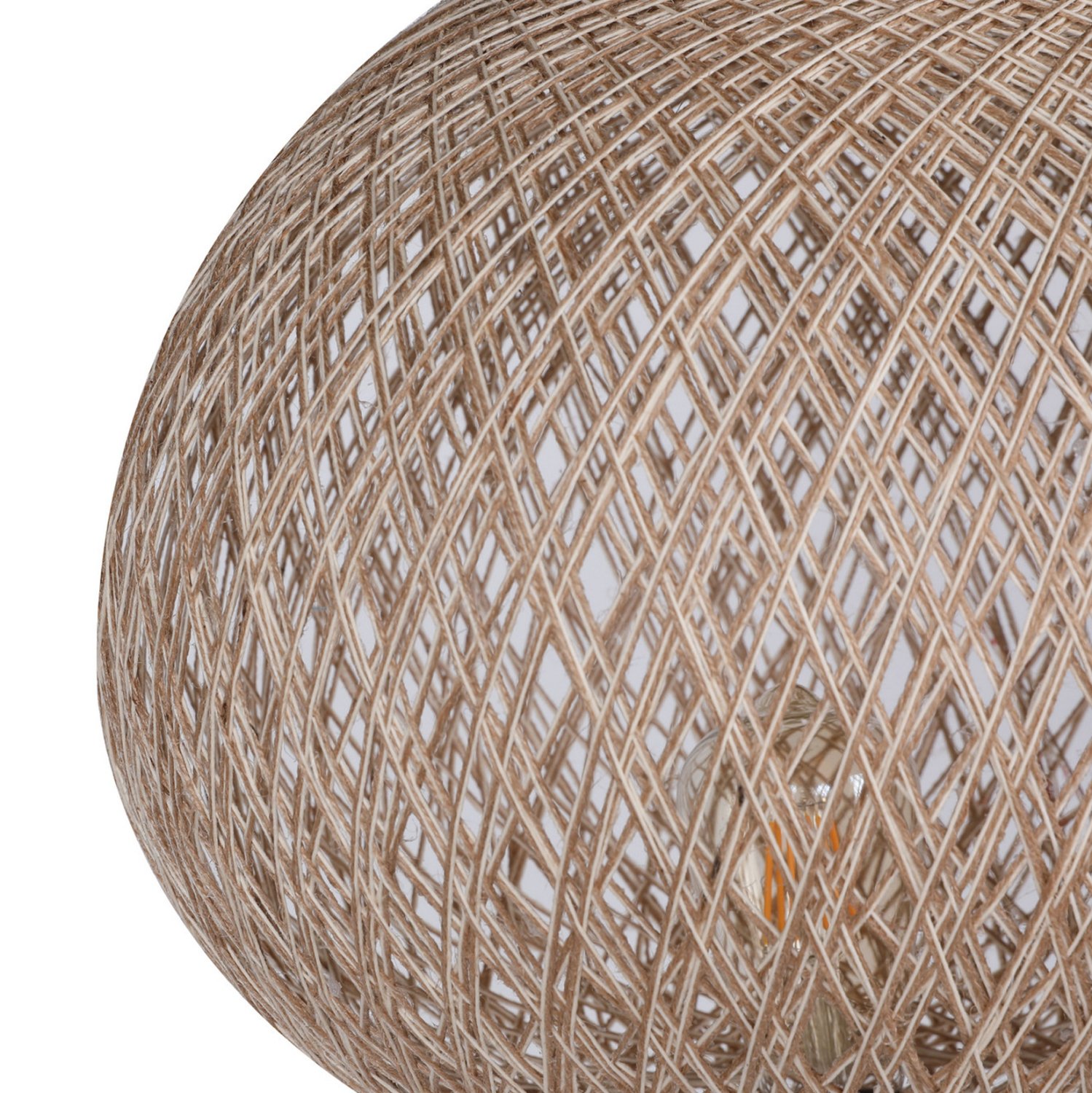 Το φωτιστικό είναι κατασκευασμένο από ενισχυμένο MDF και το καπέλο είναι επενδυμένο με λεπτό σκοινί πλεκτής γιούτας, υψηλής ποιότητας και αντοχής στο χρόνο, σε μπεζ απόχρωση.