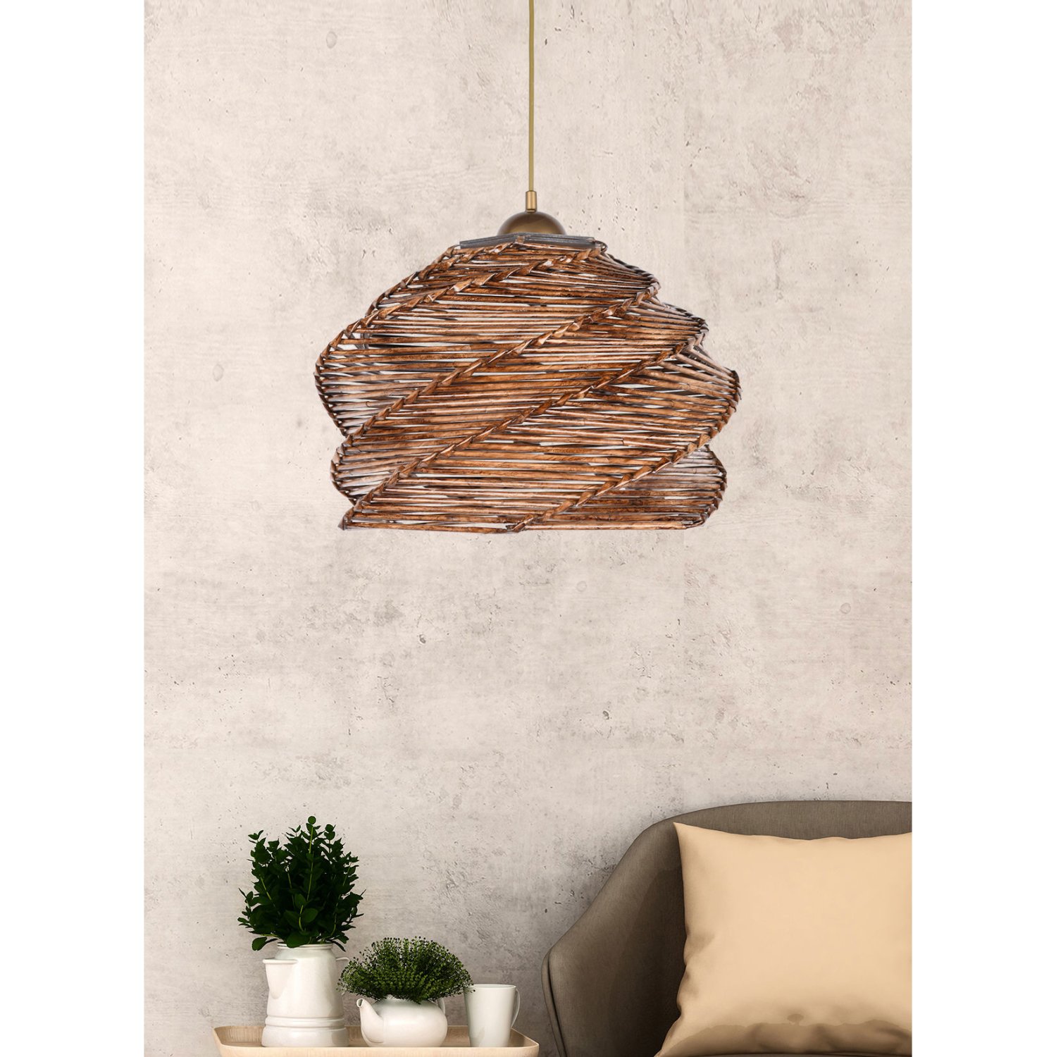 Μοντέρνο κρεμαστό φωτιστικό οροφής, κατασκευασμένο από ξύλινο σκελετό και επενδυμένο από bamboo υλικό σε καρυδί απόχρωση.