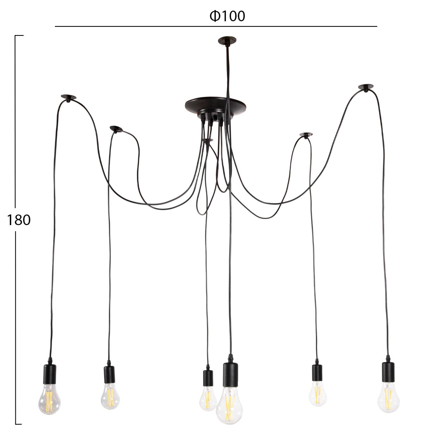 Το πολύφωτο ΗΜ4175 είναι μια ακόμα προσθήκη στην γκάμα μας. Έχει μαύρη μεταλλική βάση οροφής, από την οποία κρέμονται 6 μαύρα μακριά καλώδια που καταλήγουν σε 6 μαύρα ντουί. Αυτά τα καλώδια μπορείτε να τα αναρτήσετε με διάφορους τρόπους από την οροφή δίνοντας το δικό σας στυλ στον χώρο. Αυτό το πληθωρικό πολύφωτο θα φωτίσει με άπλετο φως μεγάλους χώρους και θα εντυπωσιάσει με το απλότητά του.