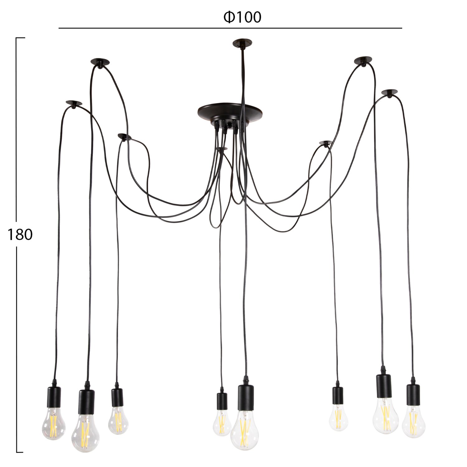 Το πολύφωτο ΗΜ4176 είναι μια ακόμα προσθήκη στην γκάμα μας. Έχει μαύρη μεταλλική βάση οροφής, από την οποία κρέμονται 8 μαύρα μακριά καλώδια που καταλήγουν σε 8 μαύρα ντουί. Αυτά τα καλώδια μπορείτε να τα αναρτήσετε με διάφορους τρόπους από την οροφή δίνοντας το δικό σας στυλ στον χώρο. Αυτό το πληθωρικό πολύφωτο θα φωτίσει με άπλετο φως μεγάλους χώρους και θα εντυπωσιάσει με το απλότητά του.