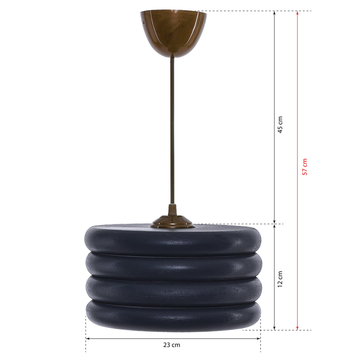 Hm7655.03- Kρεμαστό φωτιστικό—- Αφήστε το φως να απλωθεί στον χώρο με ένα πρωτότυπο και φινετσάτο μονόφωτο οροφής, ολοκληρώνοντας την διακόσμησή σας. Το ΗΜ7655.03 είναι ένα μονόφωτο φωτιστικό με το καπέλο να είναι ξύλινοι δακτύλιοι σε ΑΝΘΡΑΚΙ χρώμα και το καλώδιο κρεμάσματος με την βάση οροφής σε ΜΠΡΟΥΝΤΖΙΝΟ χρώμα.