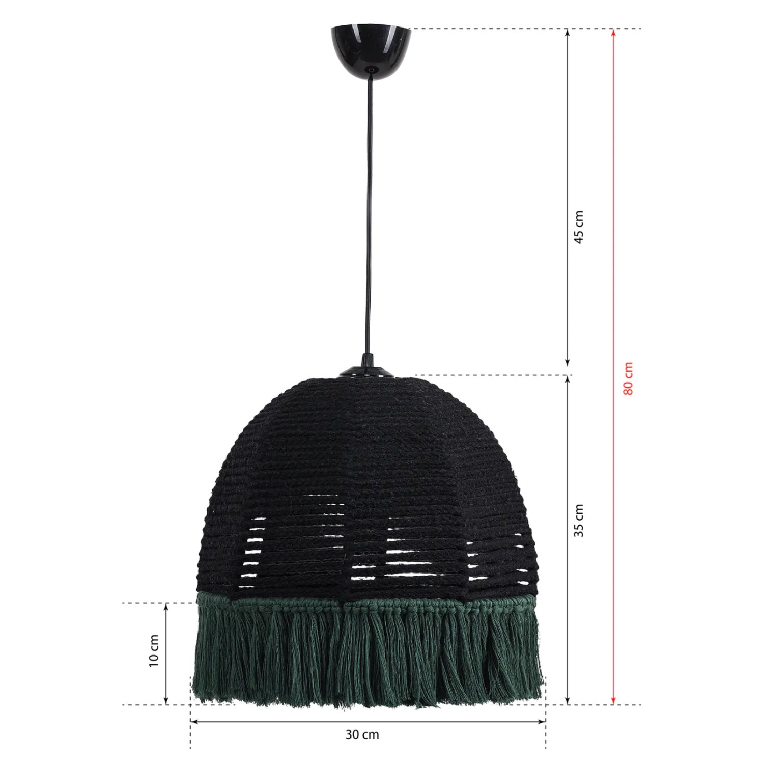 Hm7654.01- Kρεμαστό φωτιστικό—- Αν επιθυμείτε να διακοσμήσετε το χώρο σας με ένα φωτιστικό σε boho στυλ, αυτό είναι η πιο σωστή επιλογή. Είναι ένα μονόφωτο φωτιστικό με «καπέλο» σε σχήμα καμπάνα φτιαγμένο από ΜΑΥΡΟ λεπτό πλεκτό σκοινί, υψηλής ποιότητας και αντοχής στο χρόνο. Το ιδιαίτερο χαρακτηριστικό, όμως, αυτού του φωτιστικού είναι ότι το «καπέλο» καταλήγει σε κρόσια χρώματος ΚΥΠΑΡΙΣΣΙ, δίνοντας μια άλλη αίσθηση στον χώρο.