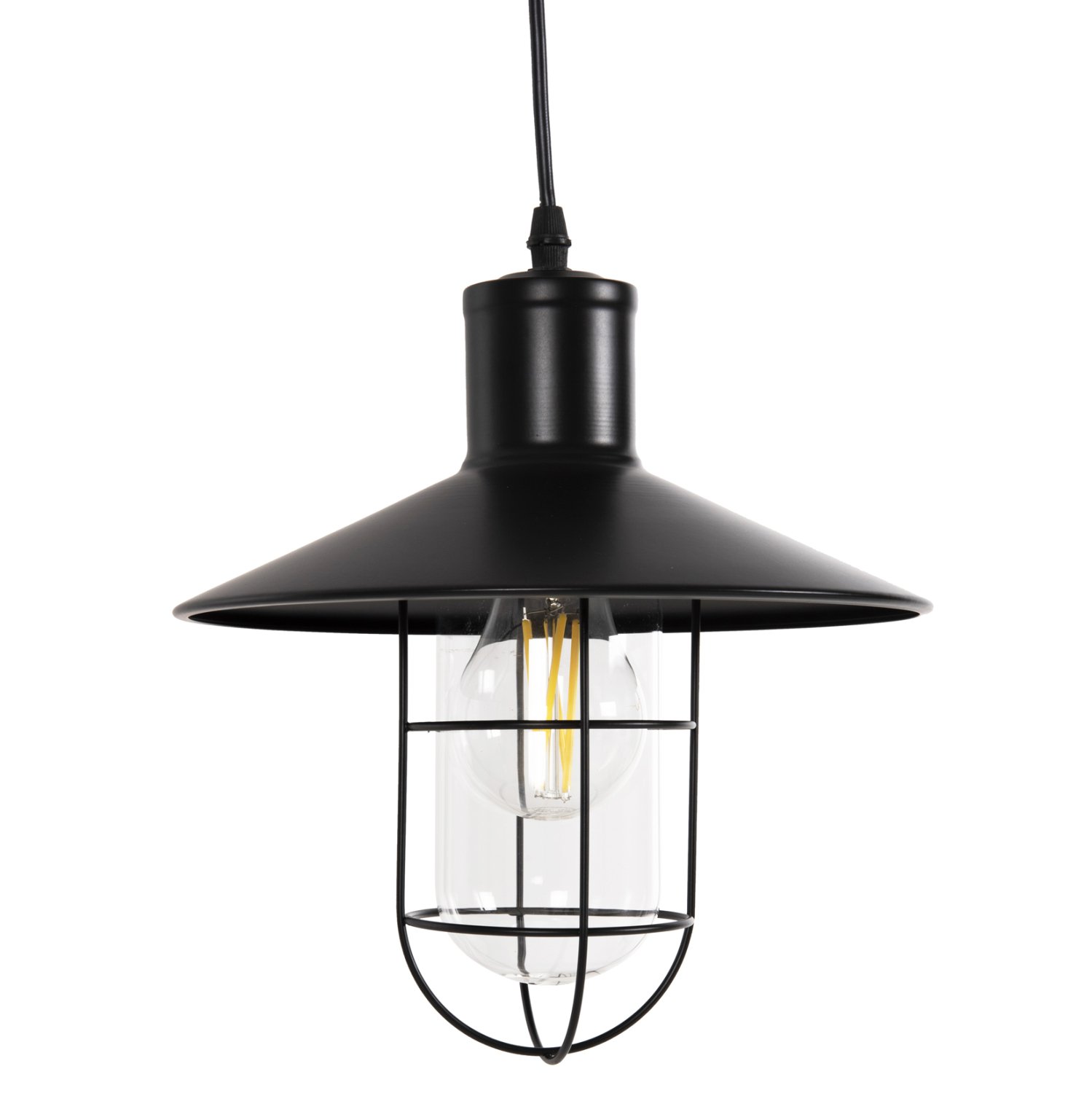 Το HΜ4119 είναι ένα νέο μονόφωτο φωτιστικό που θα ανανεώσει τη διακόσμησή σου. Το κρεμαστό αυτό φωτιστικό έχει μεταλλικό ρηχό καπέλο σε ΜΑΥΡΟ χρώμα και μεταλλικό μακρόστενο κλωβό με γυαλί στο εσωτερικό για τον λαμπτήρα. Ένα φωτιστικό που θα θυμίζει φωτιστικά βιομηχανικού τύπου για μια διαφορετική «νότα» στον χώρο σας.