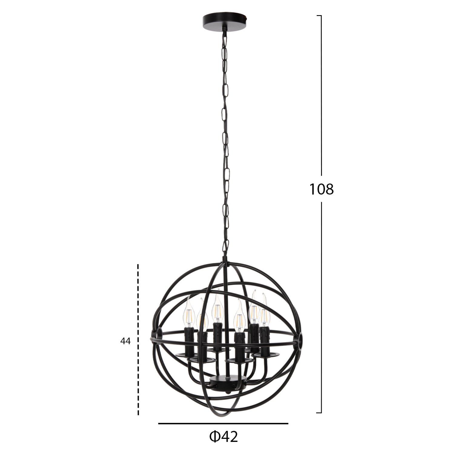 ΦΩΤΙΣΤΙΚΟ ΟΡΟΦΗΣ ΚΡΕΜΑΣΤΟ HM4127 ΜΑΥΡΗ ΜΕΤΑΛΛΙΚΗ ΣΦΑΙΡΑ 6-ΦΩΤΟ Φ42×108Υεκ.