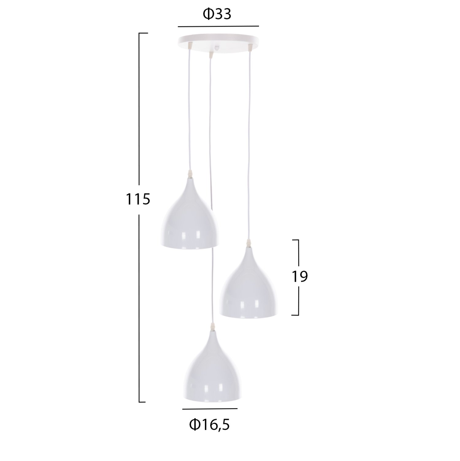 Ανακαλύψτε το νέο μας 3-φωτο κρεμαστό φωτιστικό οροφής, και μην διστάσετε να το εντάξετε στην διακόσμησή σας. Το όμορφο ΛΕΥΚΟ μέταλλο όλου του φωτιστικού και τα 3 φώτα σε διαφορετικά ύψη θα δώσουν μια φρέσκια εικόνα και αίσθηση στον χώρο. Ιδανικό τόσο για το σπίτι, όσο και για επαγγελματικούς χώρους.