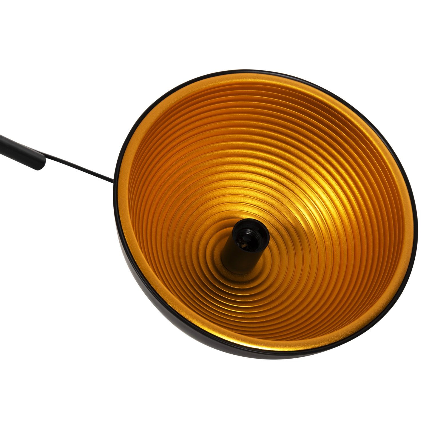 Σας παρουσιάζουμε το νέο μας κρεμαστό φωτιστικό οροφής που θα αλλάξει και θα ανανεώσει την εικόνα του χώρου σας. Πρόκειται για ένα φωτιστικό με ΜΑΥΡΟ καπέλο ΑΛΟΥΜΙΝΙΟΥ σε σχήμα καμπάνας με χρυσή επιφάνεια στην εσωτερική πλευρά του φωτιστικού.