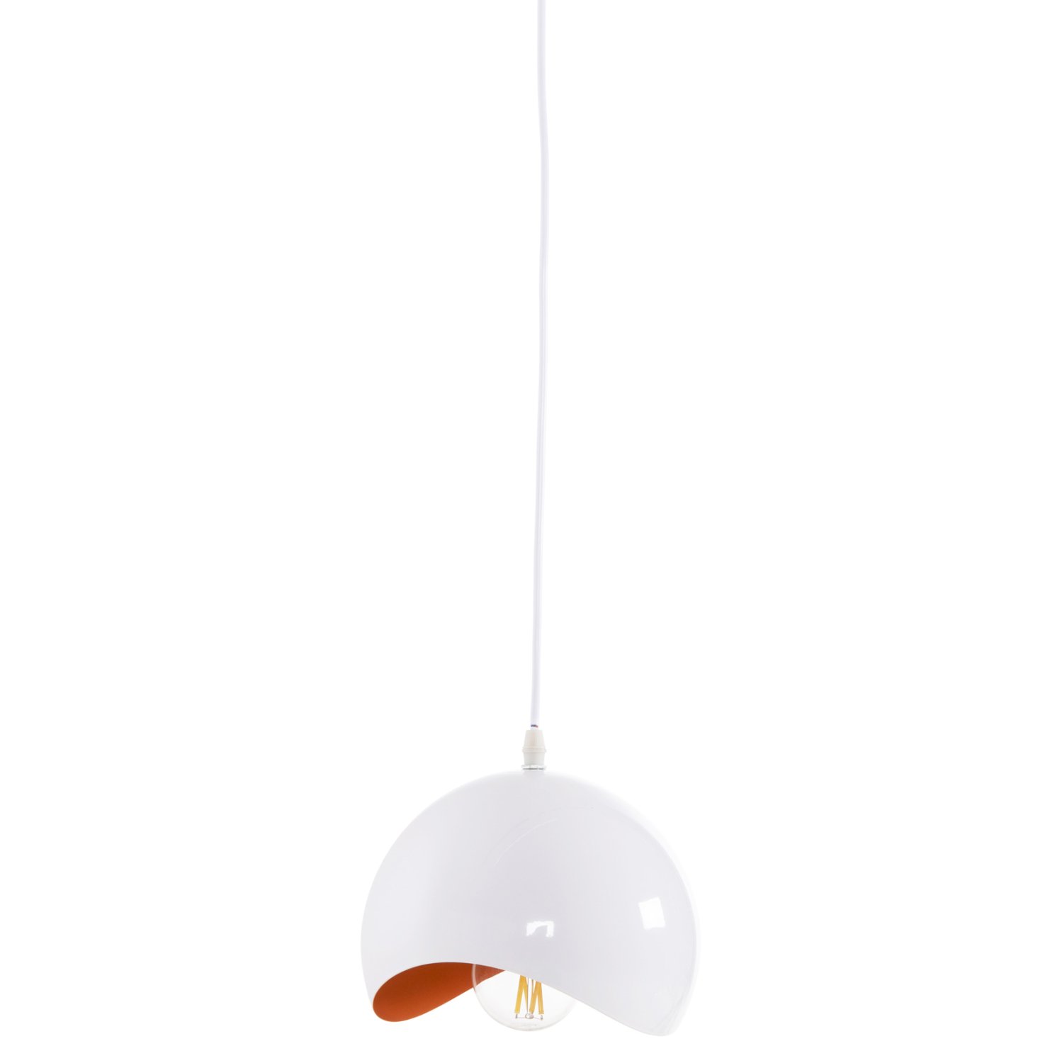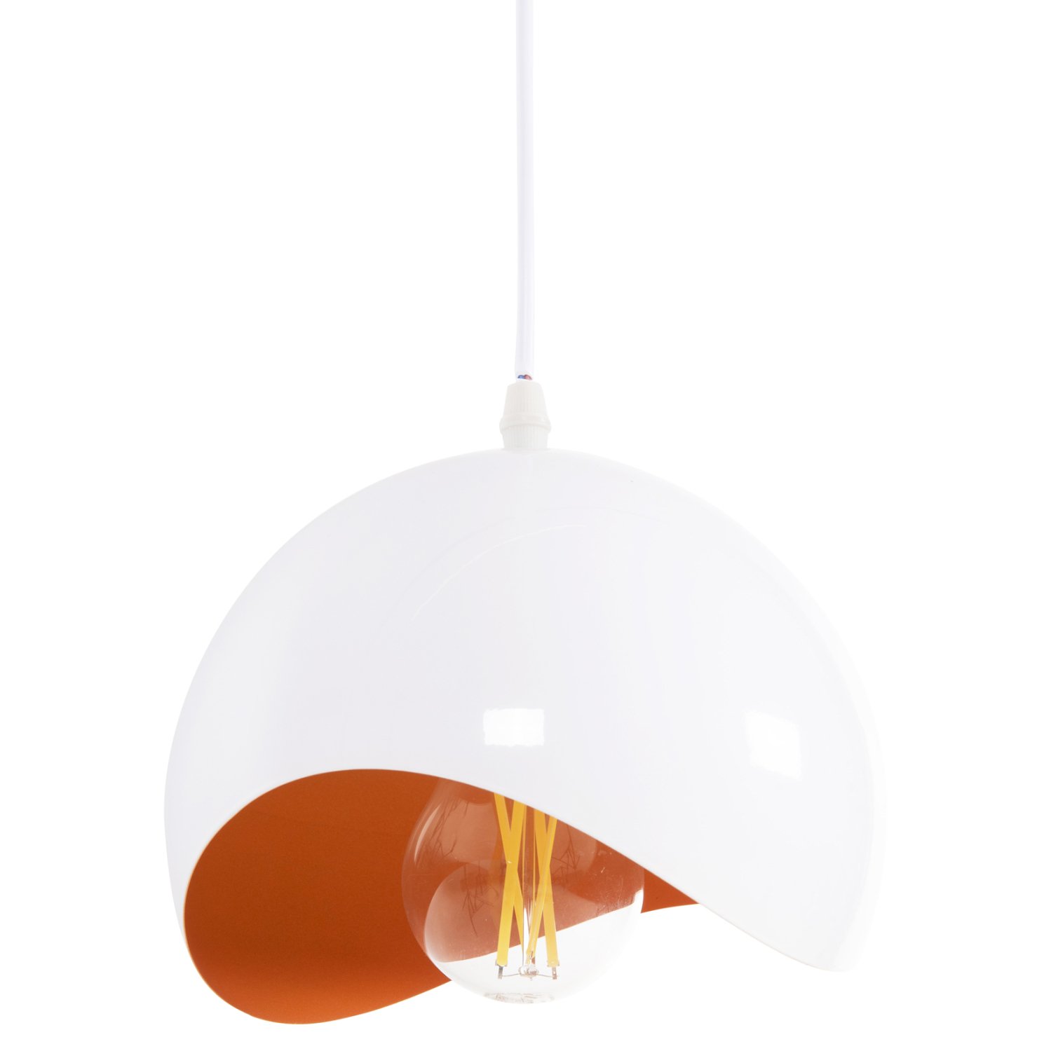 Αφήστε το φως να απλωθεί στον χώρο με ένα μοντέρνο και όμορφο κρεμαστό φωτιστικό οροφής, ολοκληρώνοντας την διακόσμησή σας. Το συμπαγές σφαιρικό ΛΕΥΚΟ μεταλλικό καπέλο με ΠΟΡΤΟΚΑΛΙ εσωτερικό σε μοντέρνο design με καμπύλες, θα δώσει μια νέα εικόνα στον χώρο σας.