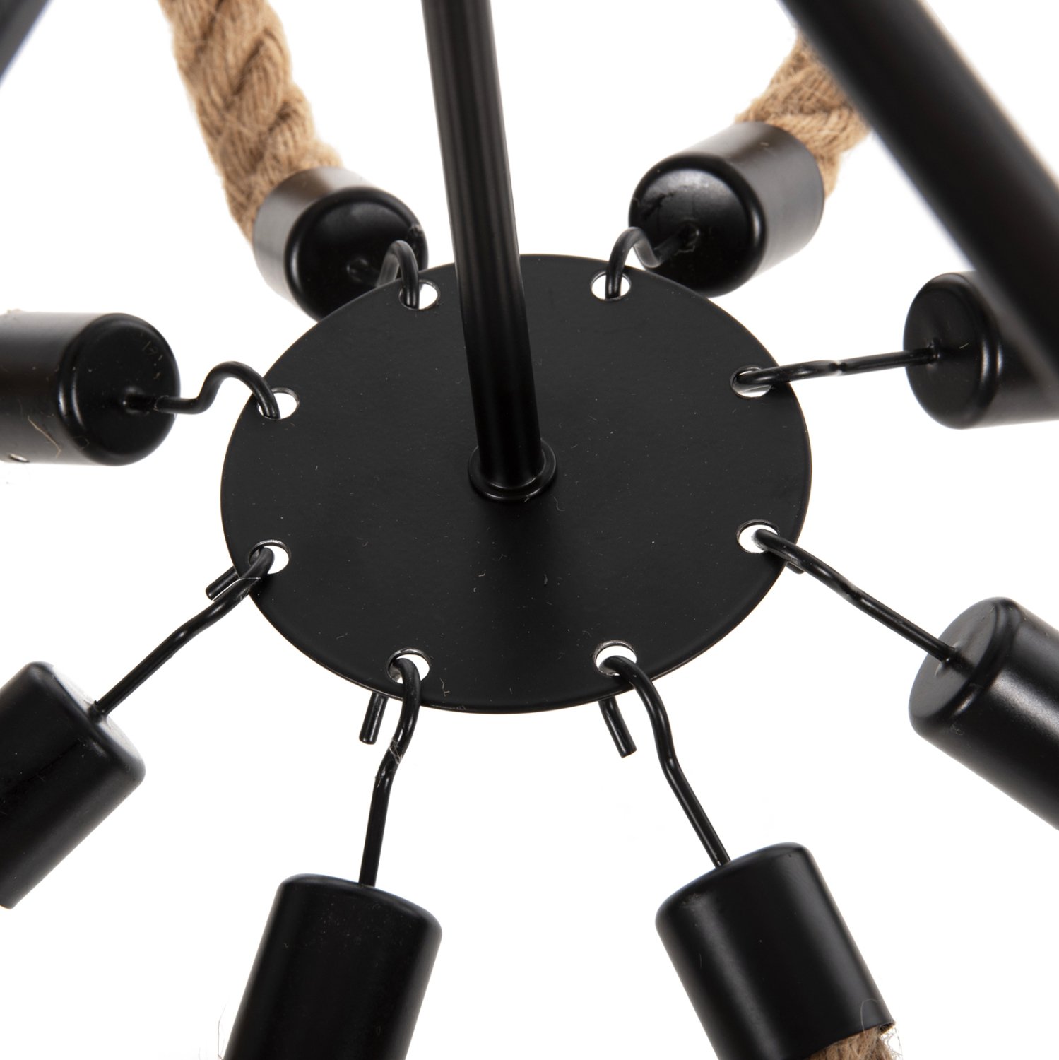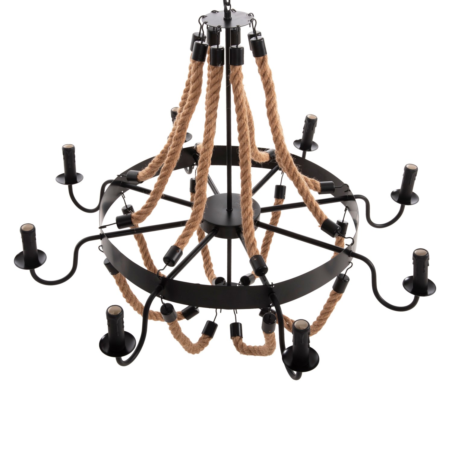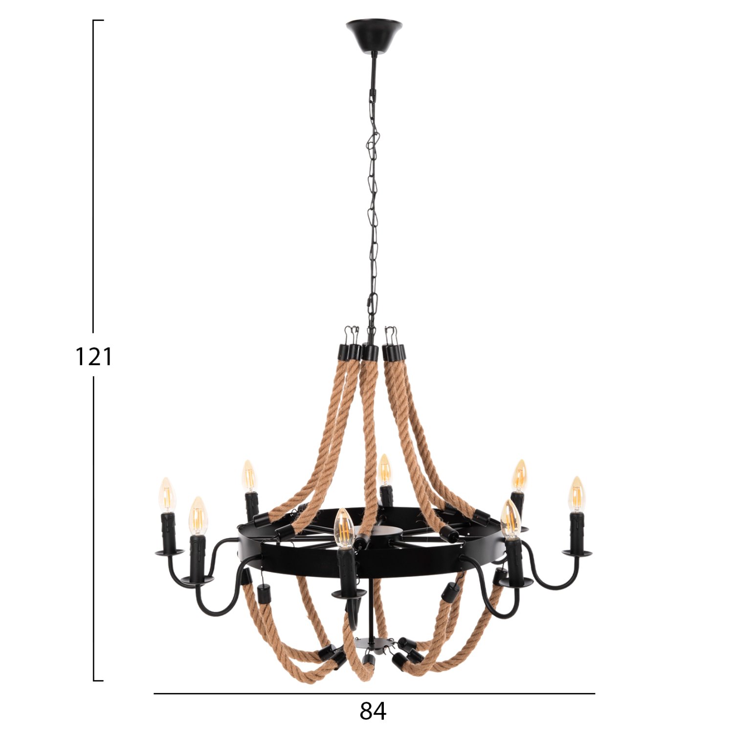 Το πολύφωτο ΗΜ4178 είναι μια ακόμα εντυπωσιακή προσθήκη στην γκάμα μας. Ο μαύρος μεταλλικός σκελετός του είναι κυκλικός και κρέμεται με αλυσίδα από την οροφή. Στον κυκλικό σκελετό είναι μονταρισμένα τα 8 φώτα σε μορφή κηροπηγίων, ενώ την εικόνα συμπληρώνουν τα σχοινιά που δίνουν την αίσθηση πολυελαίου στο φωτιστικό. Αυτό το πολύφωτο θα φωτίσει με άπλετο φως μεγάλους χώρους και θα εντυπωσιάσει με το όμορφο design του.