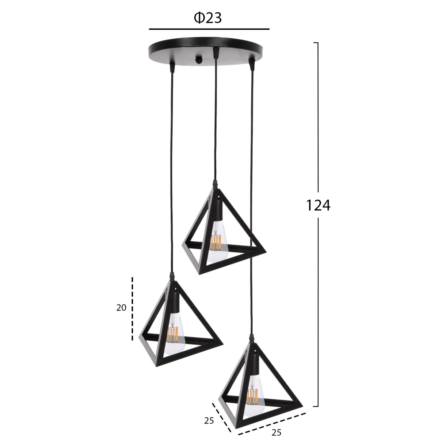 ΦΩΤΙΣΤΙΚΟ ΟΡΟΦΗΣ ΚΡΕΜΑΣΤΟ HM4182 3 ΜΑΥΡΑ ΜΕΤΑΛΛΙΚΑ ΚΑΠΕΛΑ ΠΥΡΑΜΙΔΑ Φ23×124Υεκ.