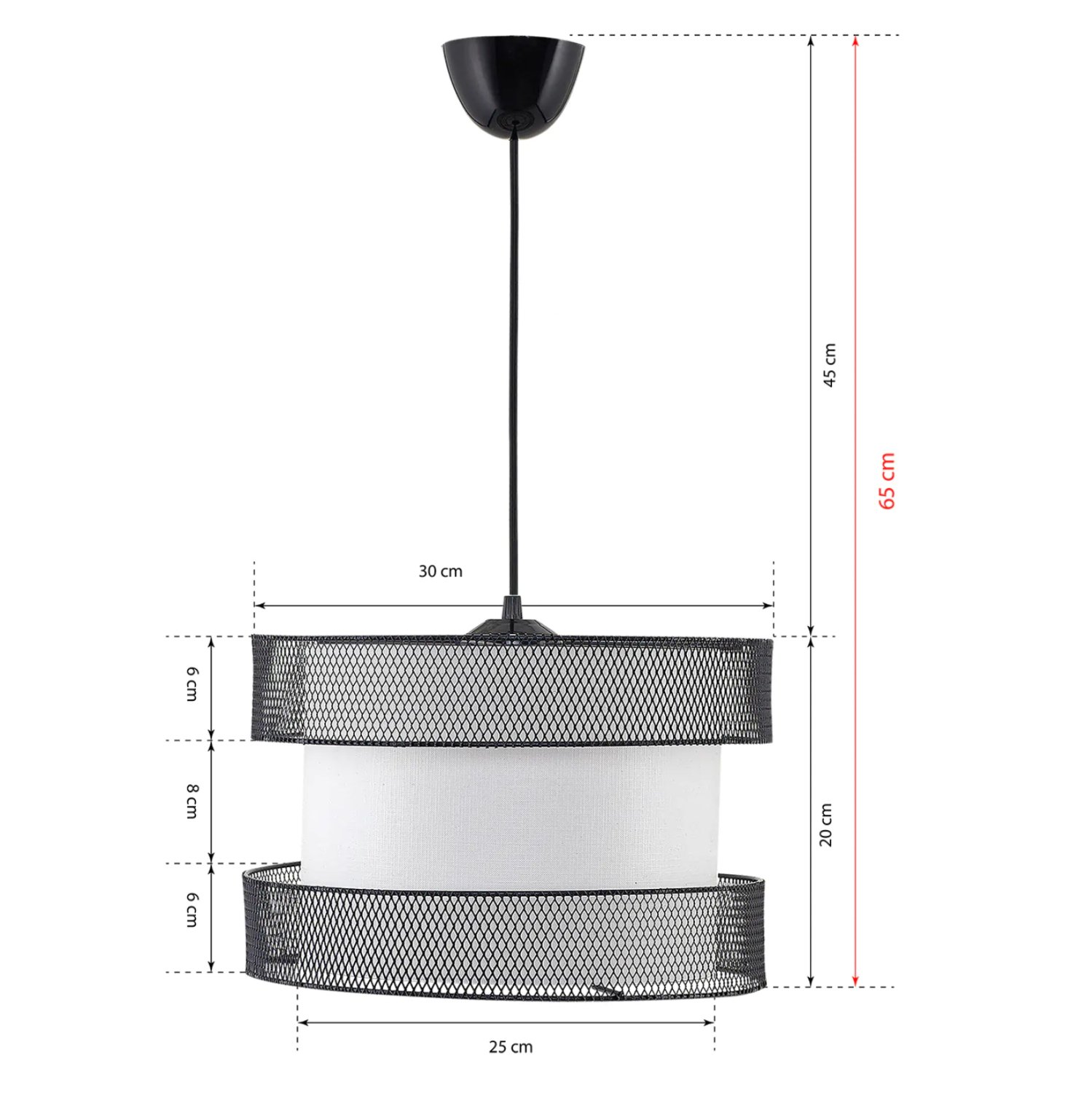 ΦΩΤΙΣΤΙΚΟ ΟΡΟΦΗΣ ΚΡΕΜΑΣΤΟ HM7658.01, ΜΑΥΡΟ ΜΕΤΑΛΛΟ, ΥΦΑΣΜΑ ΛΕΥΚΟ, Φ30×65 εκ.