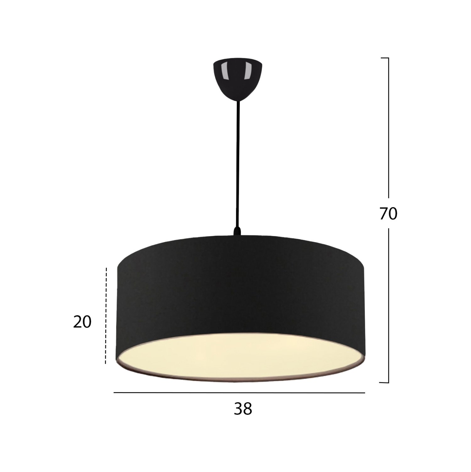 Είτε είναι μέρα, είτε νύχτα, είτε είναι αναμμένο ή σβηστό, το κρεμαστό μονόφωτο φωτιστικό με υφασμάτινο «τύμπανο» προσφέρει στον χώρο σας στιγμιαία στυλιστική αναβάθμιση. Εκεί που νομίζατε ότι η αγάπη μας και η δική σας για οτιδήποτε υφασμάτινο δεν μπορούσε να φτάσει σε νέα σύνορα, ήρθαν αυτά τα φωτιστικά οροφής. Η υφή του υφάσματος μπορεί να είναι λίγο ασυνήθιστη για κρεμαστό φωτιστικό, αλλά χάρη στην λευκή εσωτερική του επιφάνεια, δίνει στο φως μια απαλή λάμψη. Το μαύρο χρώμα του «τύμπανου» πραγματικά δίνει την εντύπωση της πολυτέλειας χωρίς όριο.